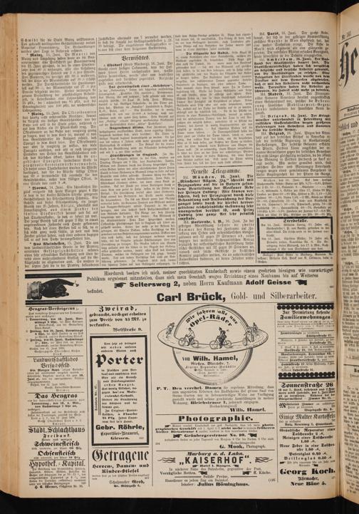 z. Ebsdorf(Kreis Marburg), 16. Juni. Der Oekonoms, dem der Hof— nachgelaufen war, diesen heimtreiben, wurde aber von und furchtbar zugerichtet. Aerztliche