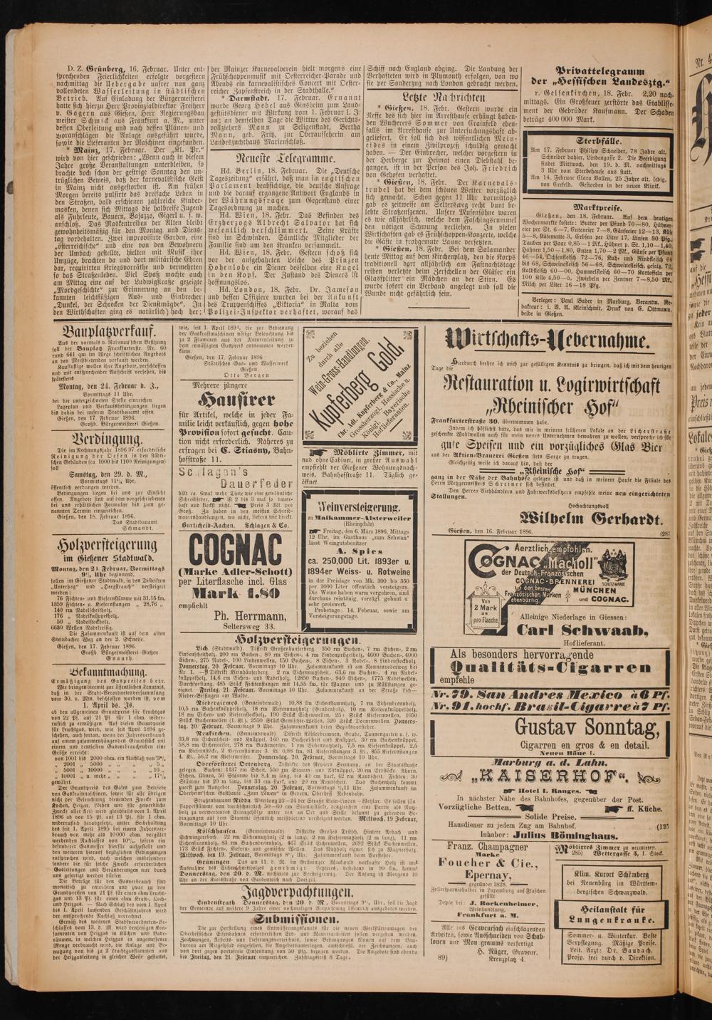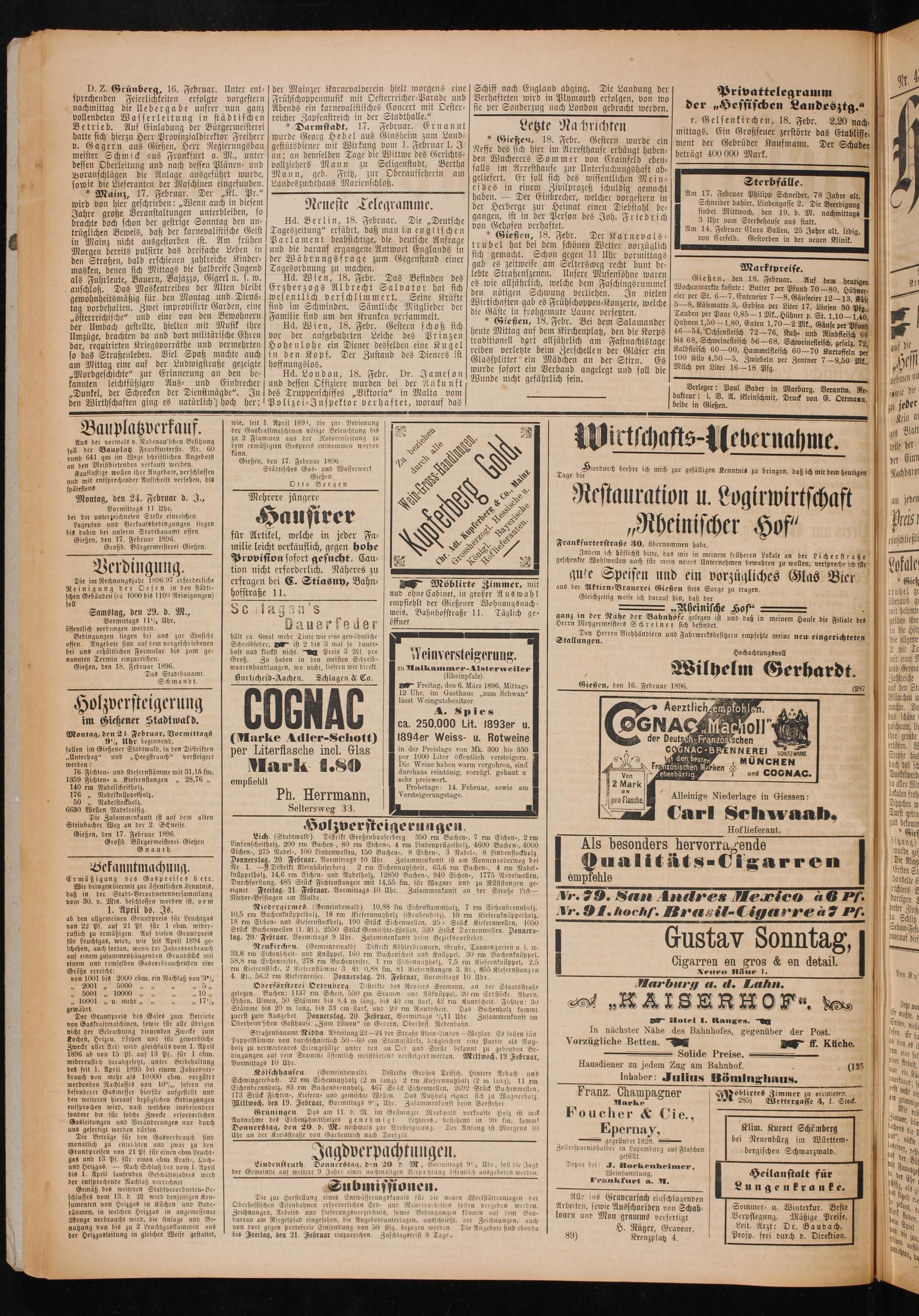 Gießen, den 18. Februar 1896.