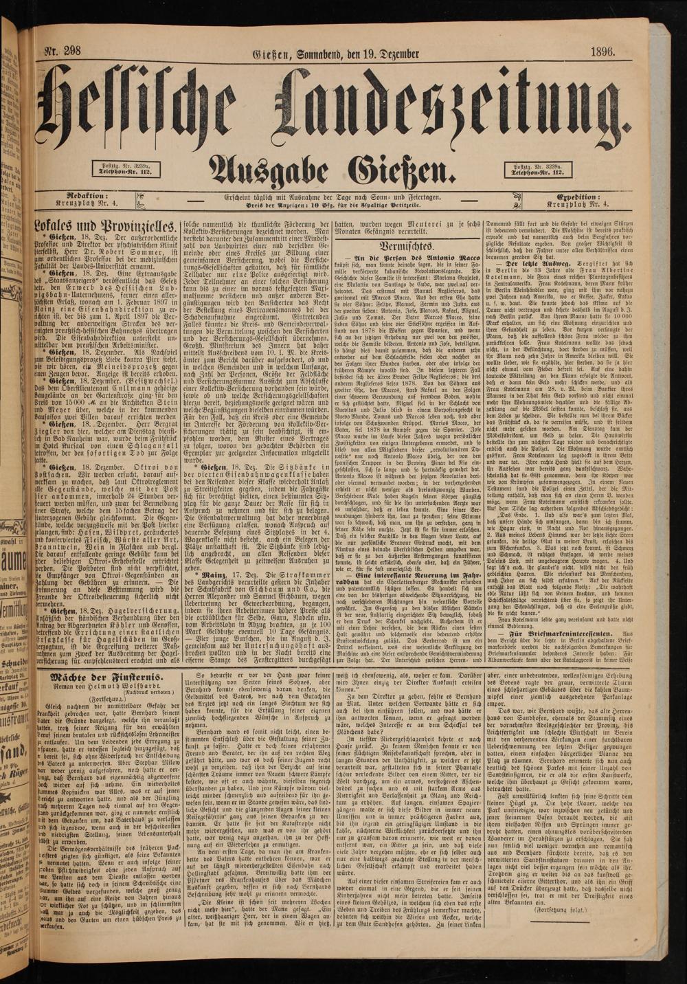 m ordentlichen Professor bei der medizinischen Fakultät der Landes⸗Universität ernannt. SGießen, 18. Dez. Eine Extraausgabe ges„Staatsanzeigers“ veröffentlicht das Gesetz letr, den Erwerb des Hessischen Lud— vigsbahn⸗ Unternehmens, ferner einen aller⸗ löchsten Erlaß, wonach am 1. Februar 1897 in Nainz eine Eisenbahndirektion zu er⸗ ichten ist, der bis zum 1. April 1897 die Ver⸗ paltung der anderweitigen Strecken des ver⸗ ünigten preußisch⸗hessischen Bahnnetzes übertragen pird. Die Eisenbahndirektion untersteht un⸗ mittelbar dem preußischen Arbeits minister. Gießen, 18. Dezember. Als Nachspiel um Beleidigungsprozeß Liebe kontra Pirr steht, ie wir hören, ein Meineidsprozeß gegen inen Zeugen bevor. Anzeige ist bereits erhoben. Gießen, 18. Dezember.(Besitzwechsel.)