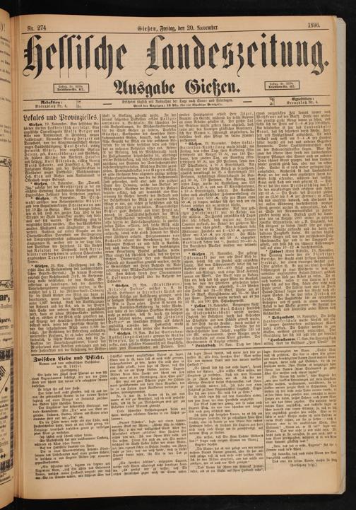 * Gießen, 19. Nov.(Stadttheater.) „Fräulein Doktor“, welches u. A. im Großh. Hoftheater zu Darmstadt kürzlich mit großem Erfolge zur Aufführung gelangte, wird in hiesigem Stadttheater am Freitag, den 20. d. Mts. in Szene gehen. Dieses ist bereits die zweite Novitäten⸗Aufführung in dieser Woche, und wäre es der rührigen Direktion Kruse⸗Helm wohl zu wünschen, daß ste durch ein besetztes aus belohnt würde, zumal sich„Fräul
