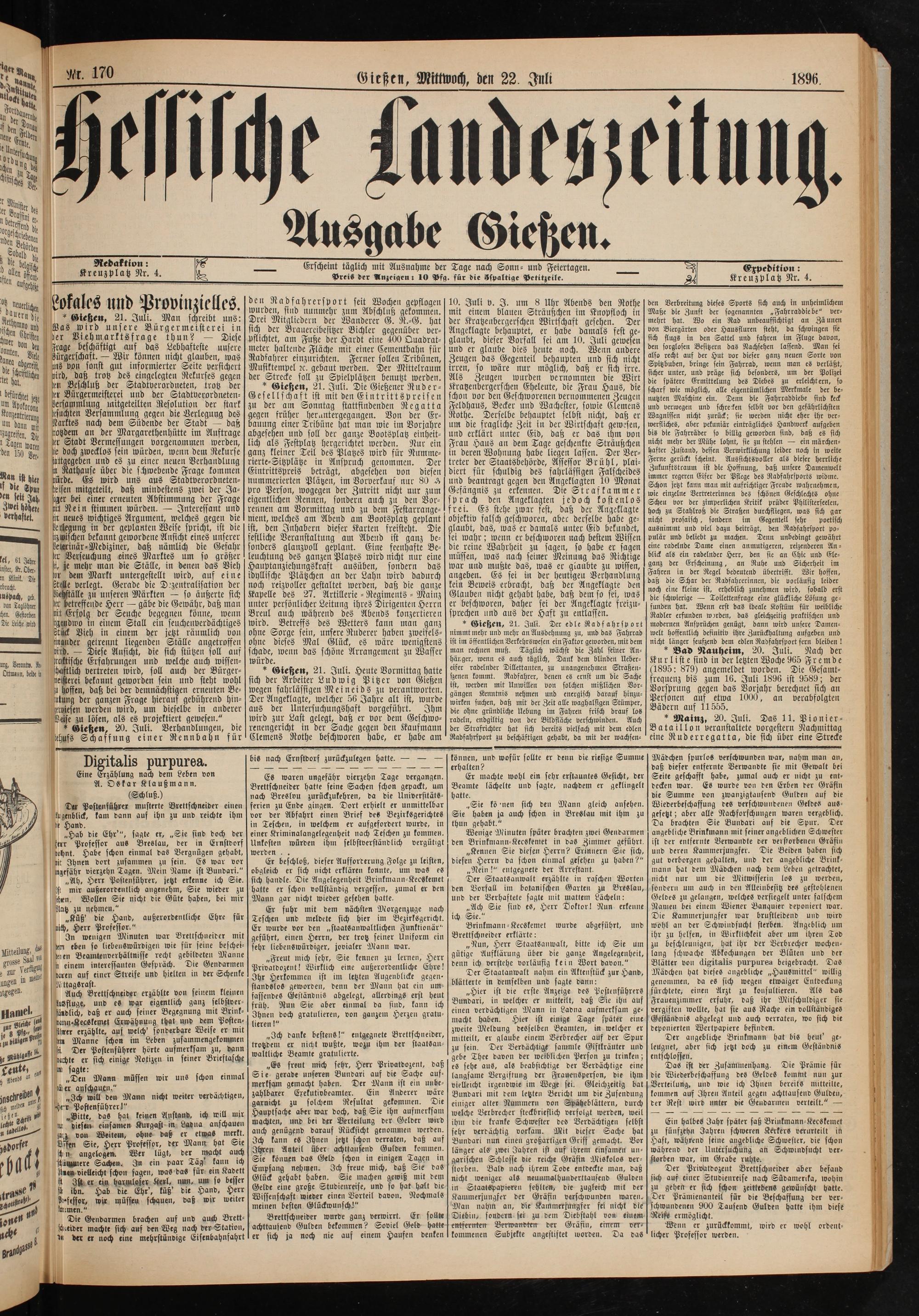 Na ö. N Gießen, Mittwoch, den 22. Juli 1896. ae 2 7 ne