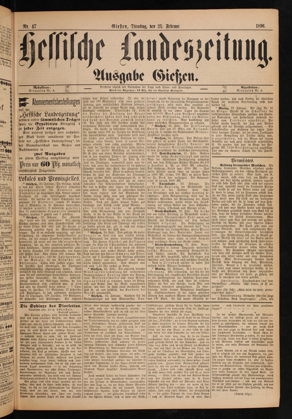 E bonnemestsbestelungen auf die. 5 „Hessische Landeszeitung“ nehmen unsere sämmtlichen Träger sowie die Expedition Kreuzplatz 4 zu jeder Zeit entgegen.