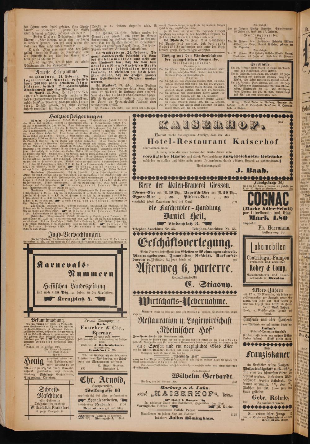 Gießen, den 16. Februar 1896.