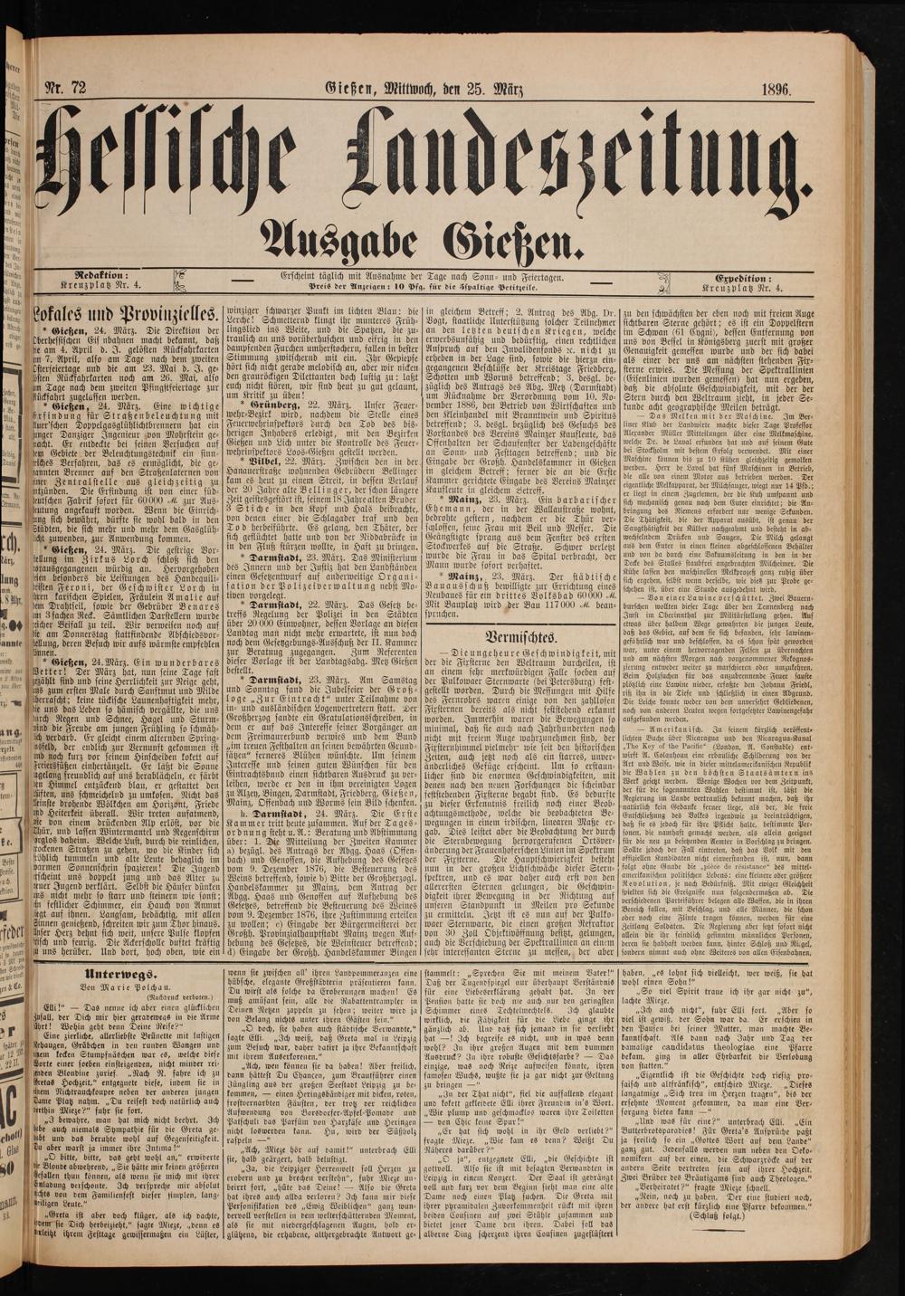 Erscheint täglich mit Ausnahme der Tage nach Sonn- und Feiertagen.
