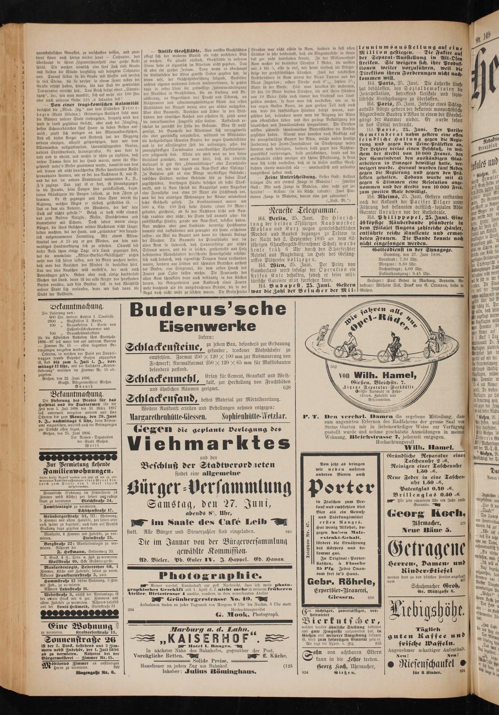 amt einzureichen, woselbst auch die Bedingungen zur Einsicht offen liegen. Gießen, den 25. Juni 1896. Die Armen Deputation der Stadt Gießen. Wolff.