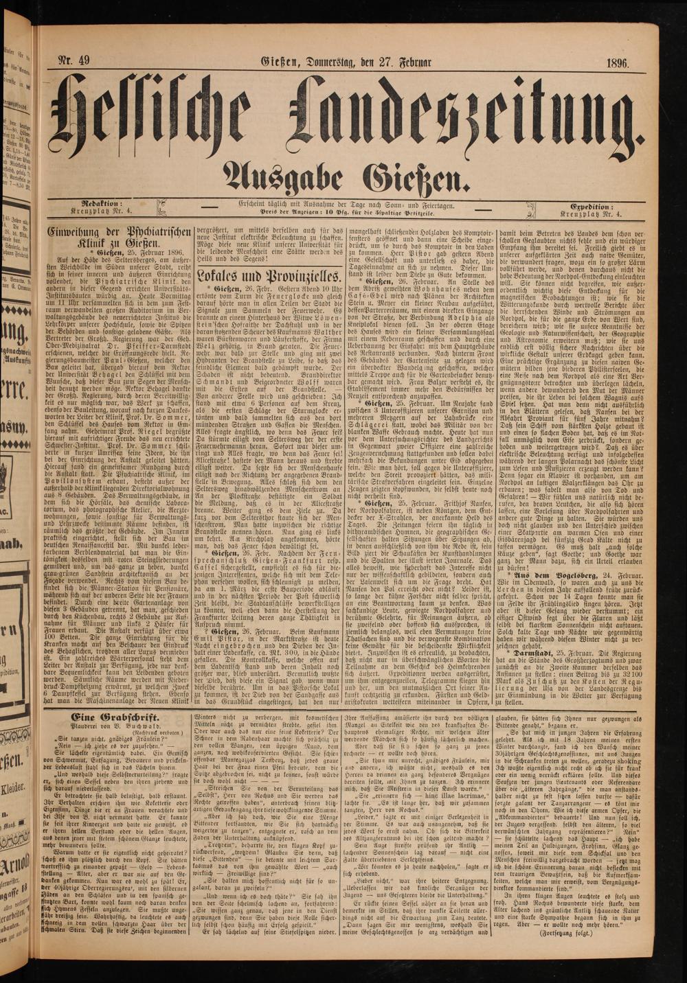 * Gießen, 25. Februar. Frithjof Nausen, der Nordpolfahrer, ist neben Röntgen, dem Eut— decker der X-Strahlen, der anerkannte Held des Tages. Die Zeitungen feiern ihn täglich in dithyrambischen Hymnen, die geographischen Ge— sellschaften halten Sitzungen über Sitzungen ab, in denen ausschließlich von ihm die Rede ist, sein Bild ziert die Schaukästen der Kunsthandlungen und die Spalten der illust ierten Journale. Das alles beweist, wie fieberhaft das Interesse nicht nur der wissenschaftlich gebildeten, sondern auch der Laienwelt sich um die Frage dreht. Hat Nansen den Pol erreicht oder nicht? Leider ist, so lange der kühne Forscher nicht selber spricht, an eine Beantwortung kaum zu denken. Was sachkundige Leute, gewiegte Nordpolfahrer und berühmte Gelehrte, für Meinungen äußern, ob sie zweifelnd oder hoffend sich aussprechen, ist ziemlich belanglos, weil eben Vermutungen keine Thatsachen sind und die verwegenste Kombination keine Gewähr für die bescheidenste Wirklichkeit bietet. Inzwischen ist es erfreulich, zu beobachten, daß nicht nur in überschwänglichen Worten die Teilnahme an dem Geschick des Heimkehrenden sich äußert. Expeditionen werden ausgerüstet, um ihm entgegenzueilen, Telegramme fliegen hin und her, um den mutmaßlichen Ort seiner An⸗ kunft rechtzeitig zu erkunden. Fürsten und Geld— aristokraten wetteifern miteinander in Opfern,