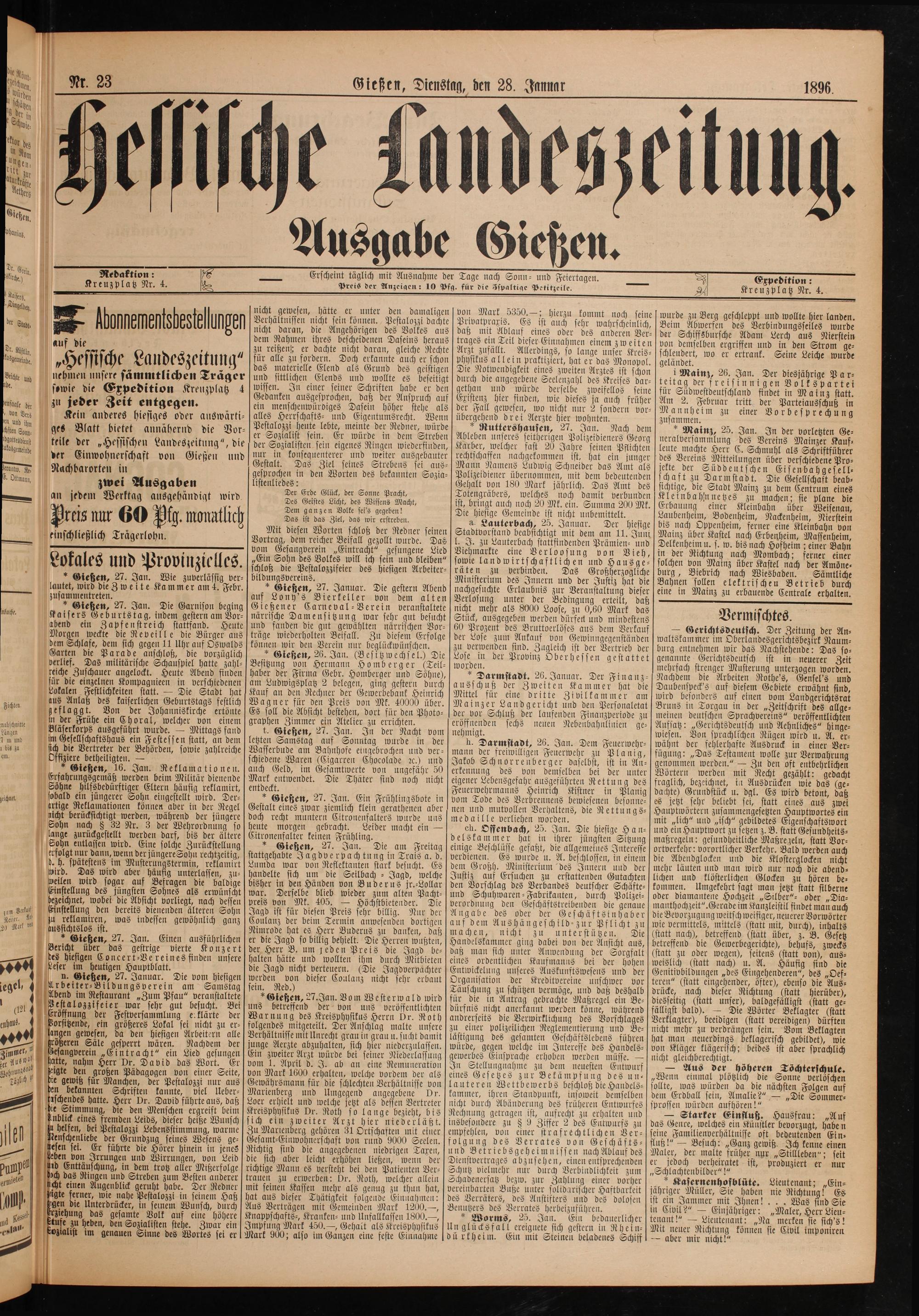Gießen, Dienstag, den 28. Jannar