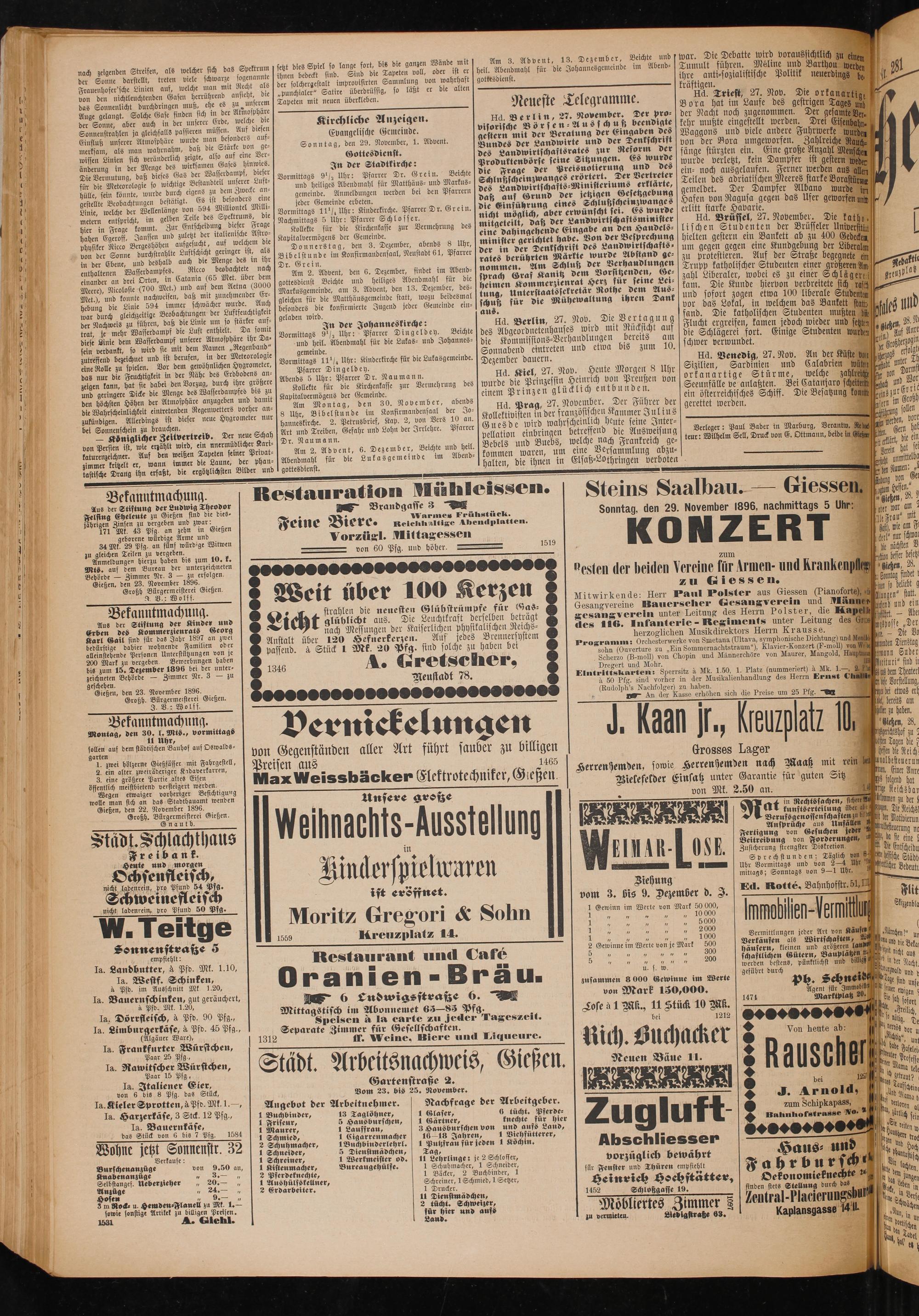 Steins Saalbau.— Giesse Sonntag, den 29. November 1896, nachmittags 5 Uhr;