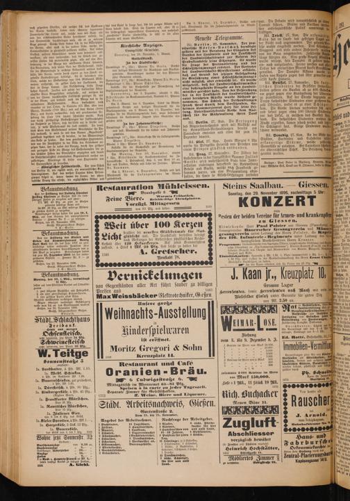 171 Mk. 43 Pfg. an zehn in Gießen geborene würdige Arme und 34 Mk. 29 Pfg. an fünf würdige Witwen zu gleichen Teilen zu vergeben.