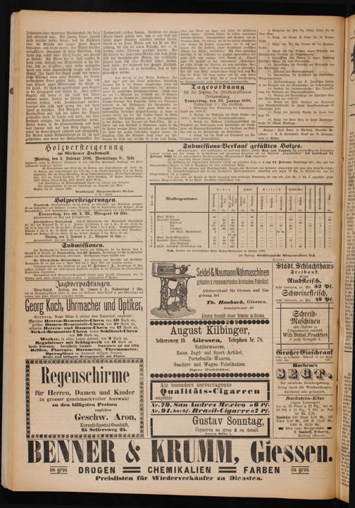 Holzversteigerung im Gießener Stadtwald. Montag, den 3. Jebruar 1896, Vormittags 9 Ahr