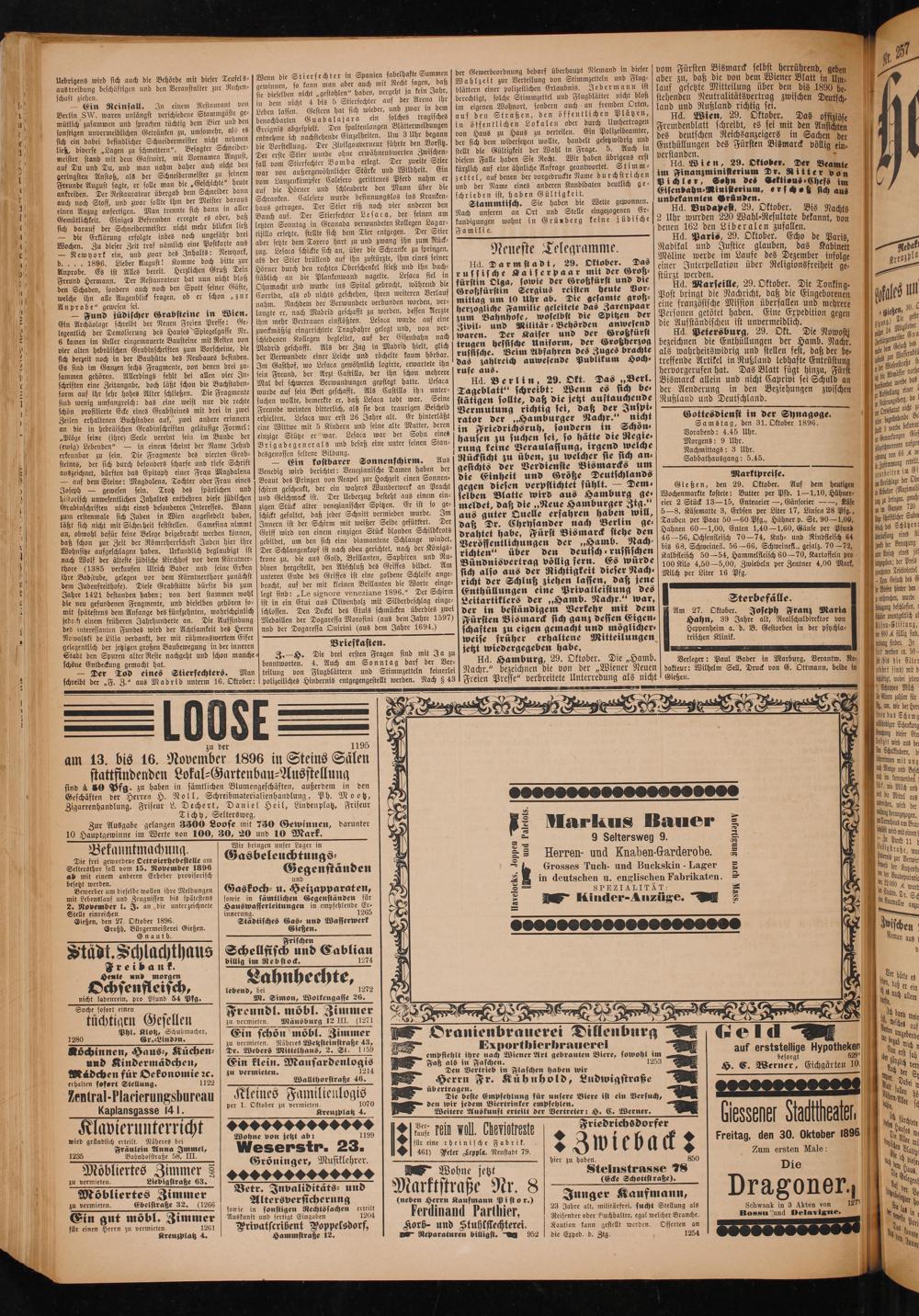 Neueste Telegramme.