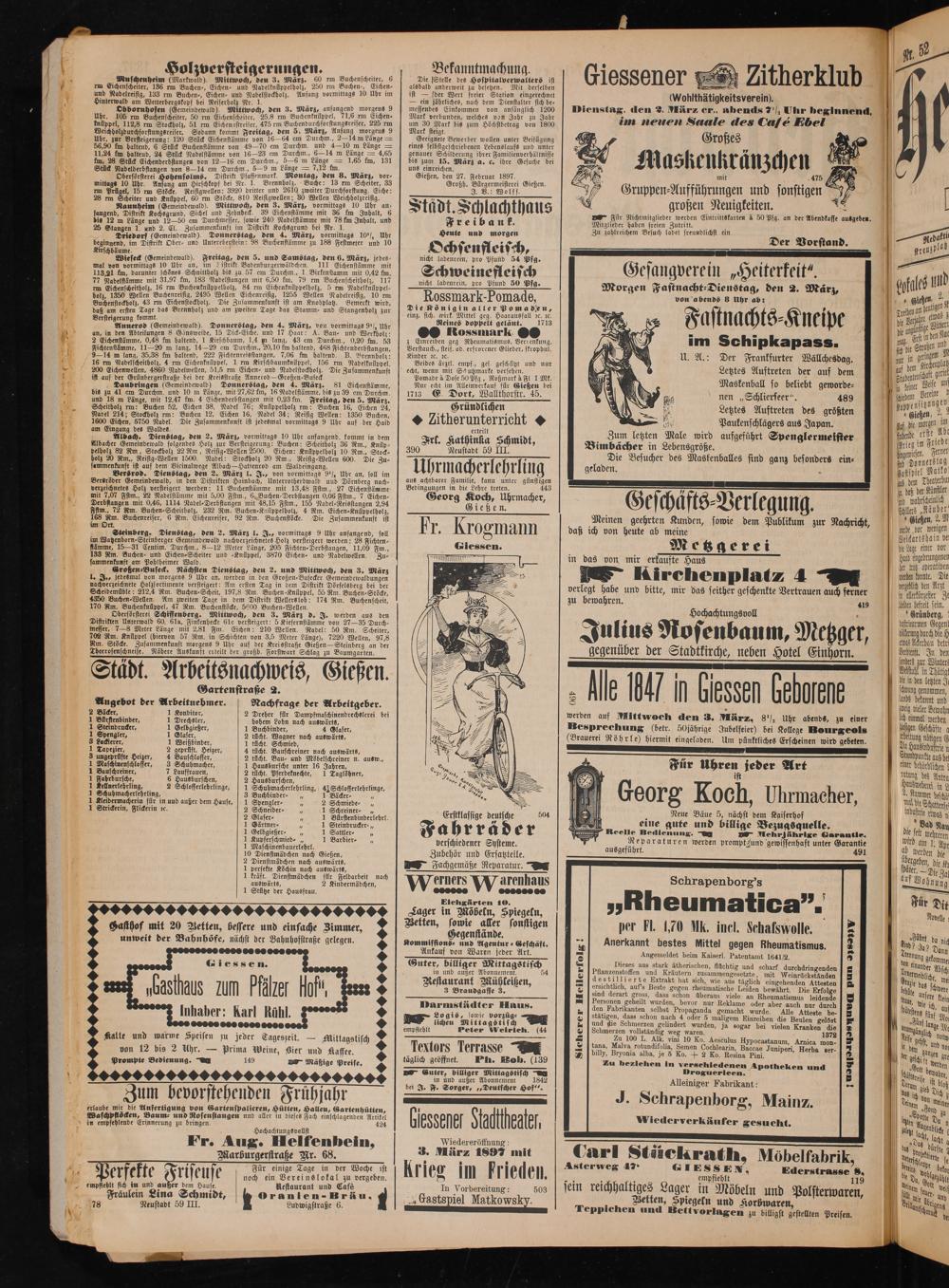 Großh. Bülrgermeisterei Gießen. J. V.: Wolff.