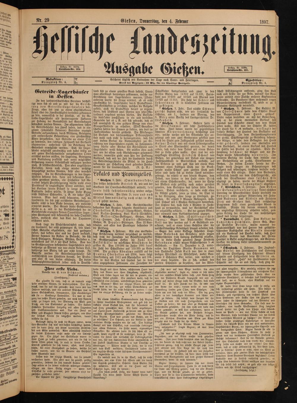 F. Ulrichstein, 2. Februar. Zum Besten der Dekanatskrankenpflege findet nächsten Sonntag im Pfannstielschen Saale hierselbst ein Konzert unter gütiger Mitwirkung des Fräu⸗ leins Rabenau aus Alsfeld und Fräulein Dietz aus Gießen statt. Das reichhaltige Programm stellt einen genußreichen Abend in Aussicht. Möchte sich darum niemand durch die ungünstige Witterung abhalten lassen, zum uten Erfolg der Sache für den wohlthätigen