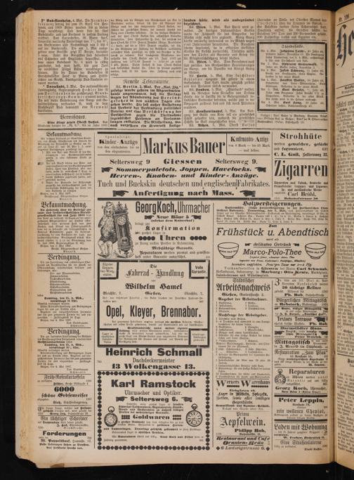 Verkaufsstellen in Giessen bei Herrn Carl Schwaab. Hoflieferant, Seltersweg; in Marburg: Otto Kratz. Marktplatz, Bahnhofstrasse und Wilhelmsplatz. 206