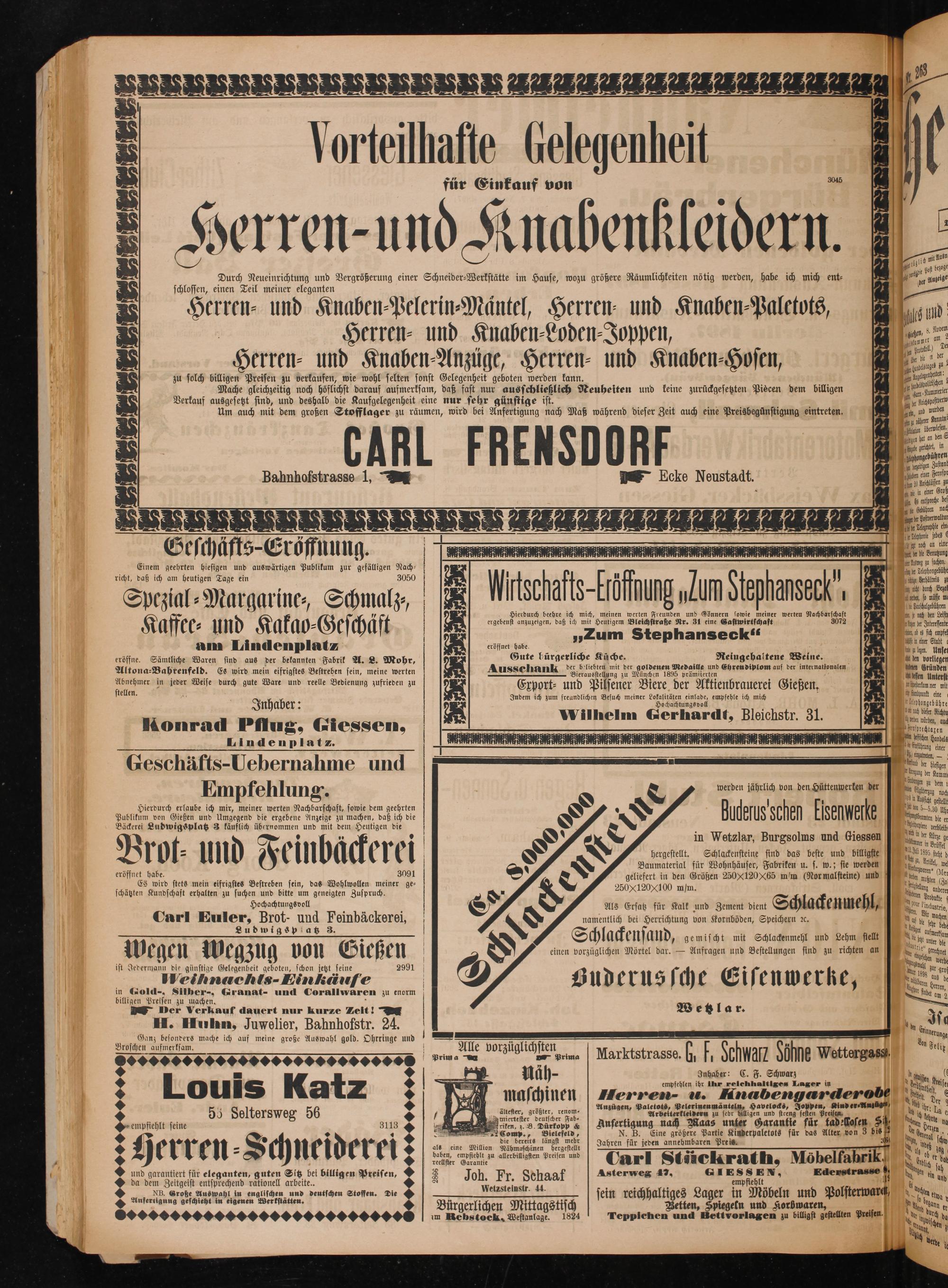 Inhaber: Konrad Pflug, Giessen, Lindenplatz.