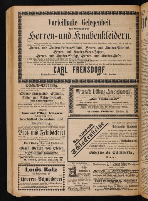 Hierdurch erlaube ich mir, meiner werten Nachbarschaft, sowie dem geehrten Publikum von Gießen und Umgegend die ergebene Anzeige zu machen, daß ich die Bäckerei Ludwigsplatz 3 käuflich übernommen und mit dem Heutigen die