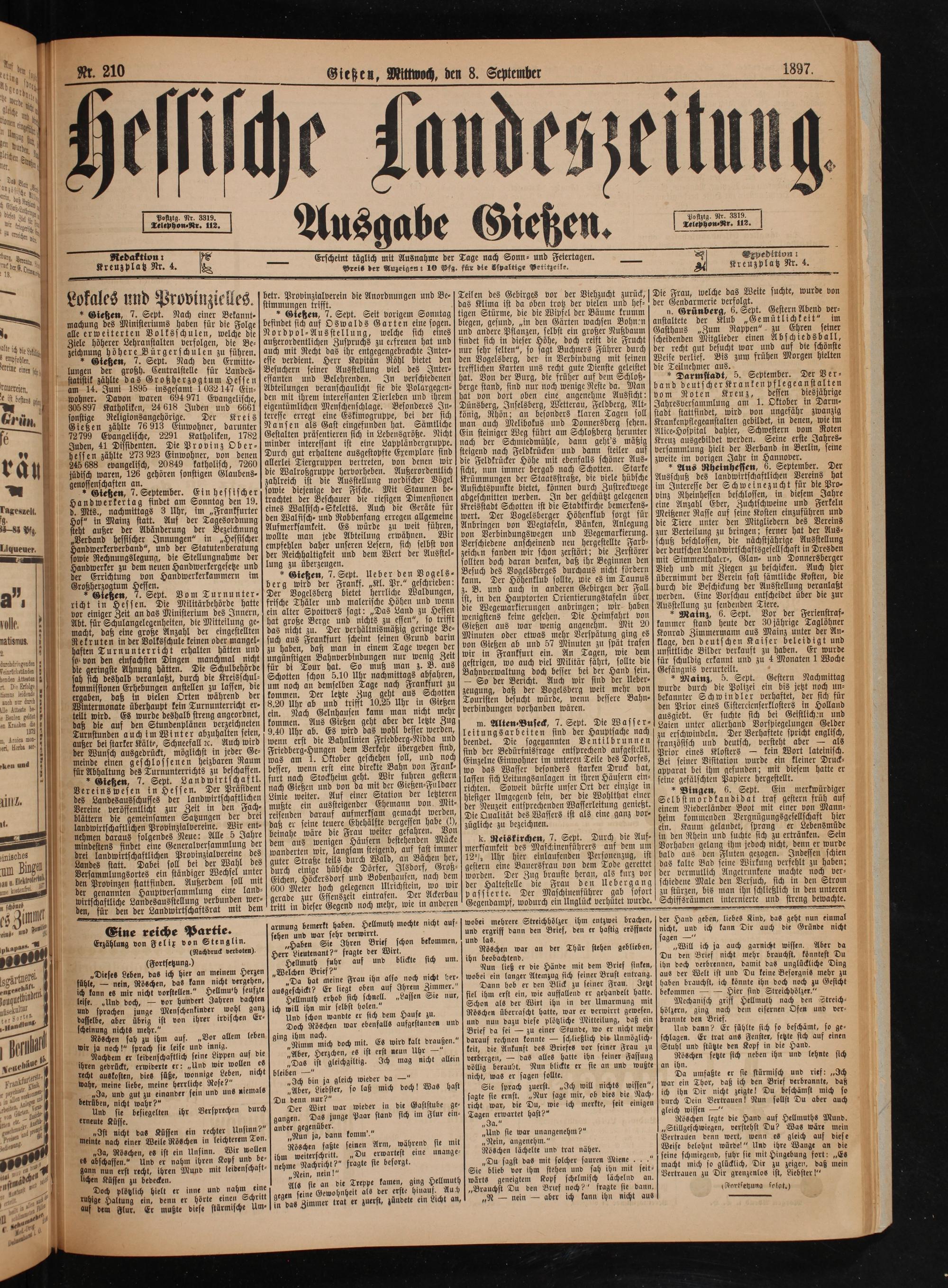 Poftztg. Nr. 3319. Telephon⸗Nr. 112.
