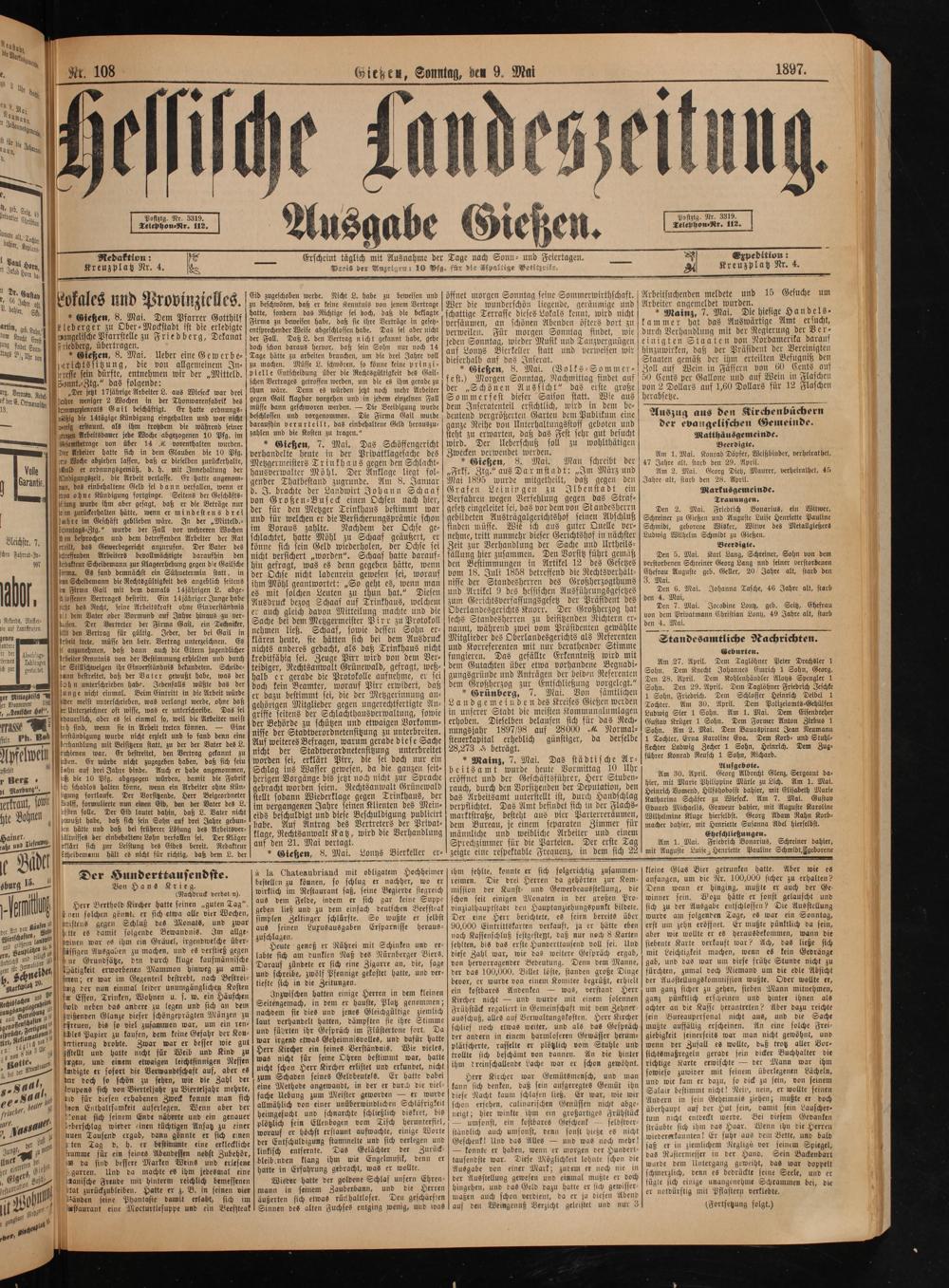 * Gießen, 8. Mai. Dem Pfarrer Gotthilf tleberger zu Ober⸗Mockstadt ist die erledigte wangelische Pfarrstelle zu Friedberg, Dekanat Friedberg, übertragen.