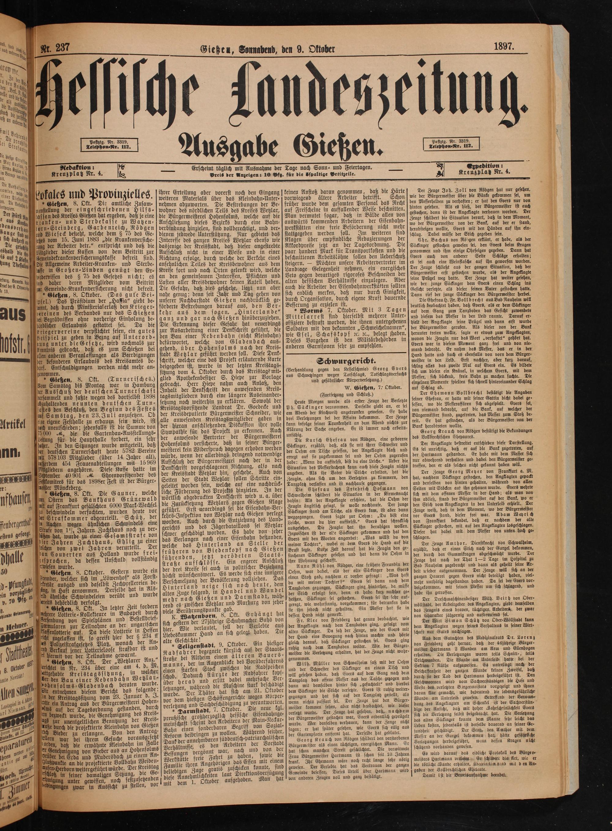 Postztg. Nr. 3319. Telephon⸗Nr. 112.