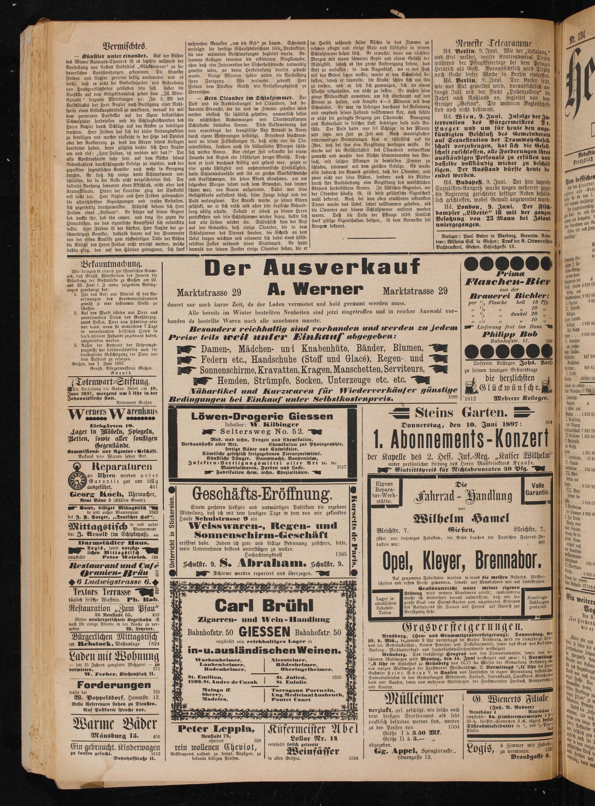 Gießen, den 1. Juni 1897. Großh. Bürgermeisterei Gießen. Guauth.
