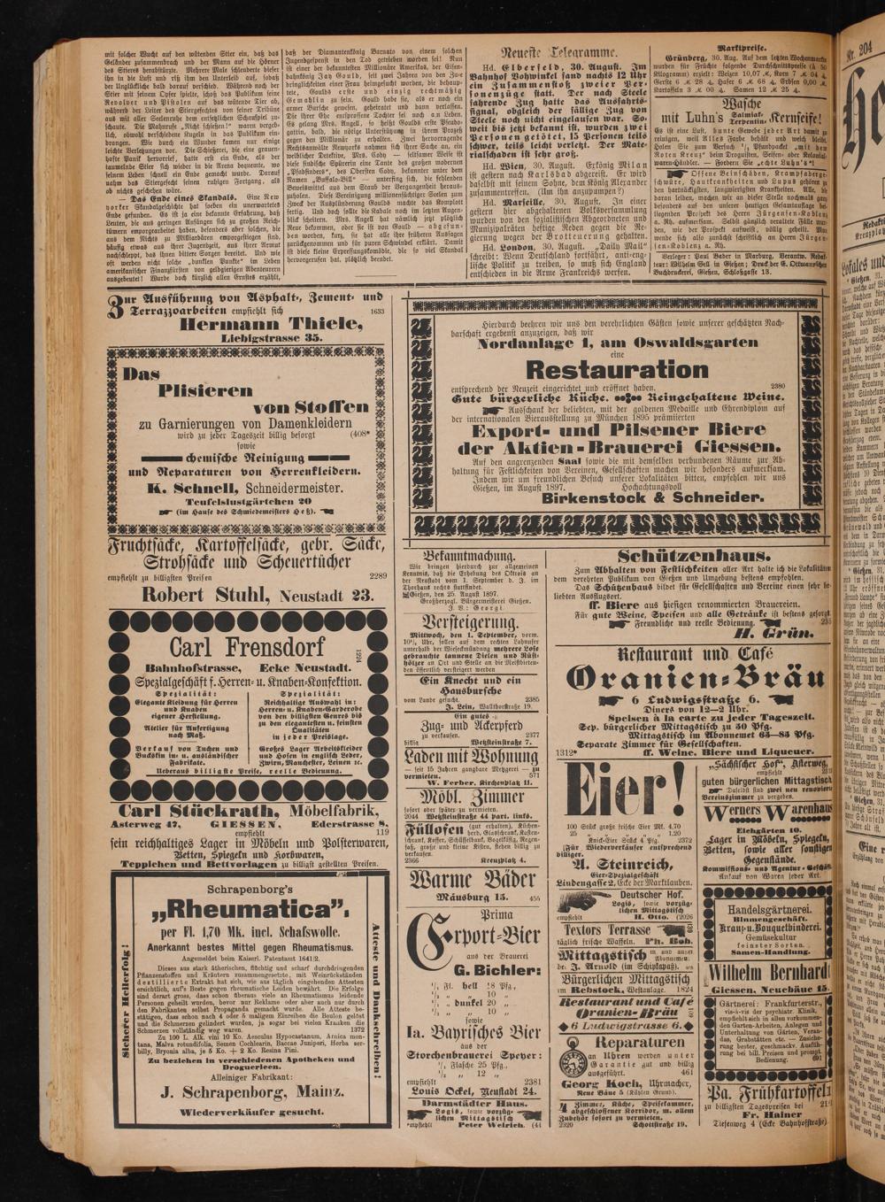 Wir bri ierd llgemei f empfiehlt zu billigsten Preissen 2289 Kenntnis, daß bie Eshebung ibes Okres an Zum Abhalten von Festlichkeiten aller Art halte ich die Lokalitäten Fießen, 3. der Neustadt vom 1. September d. J. im] dem verehrten Publikum von Gießen und Umgebung bestens empfohlen. m in eich