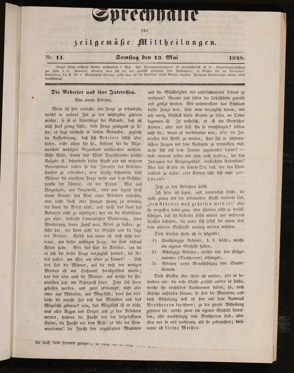 Die Arbeiter und ihre Interessen. Von einem Arbeiter.