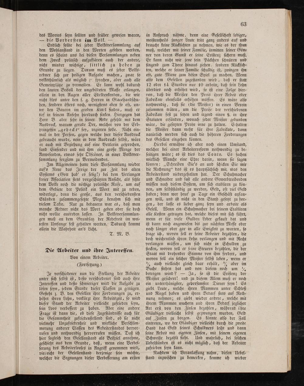 Die Arbeiter und ihre Interessen. Von einem Arbeiter.