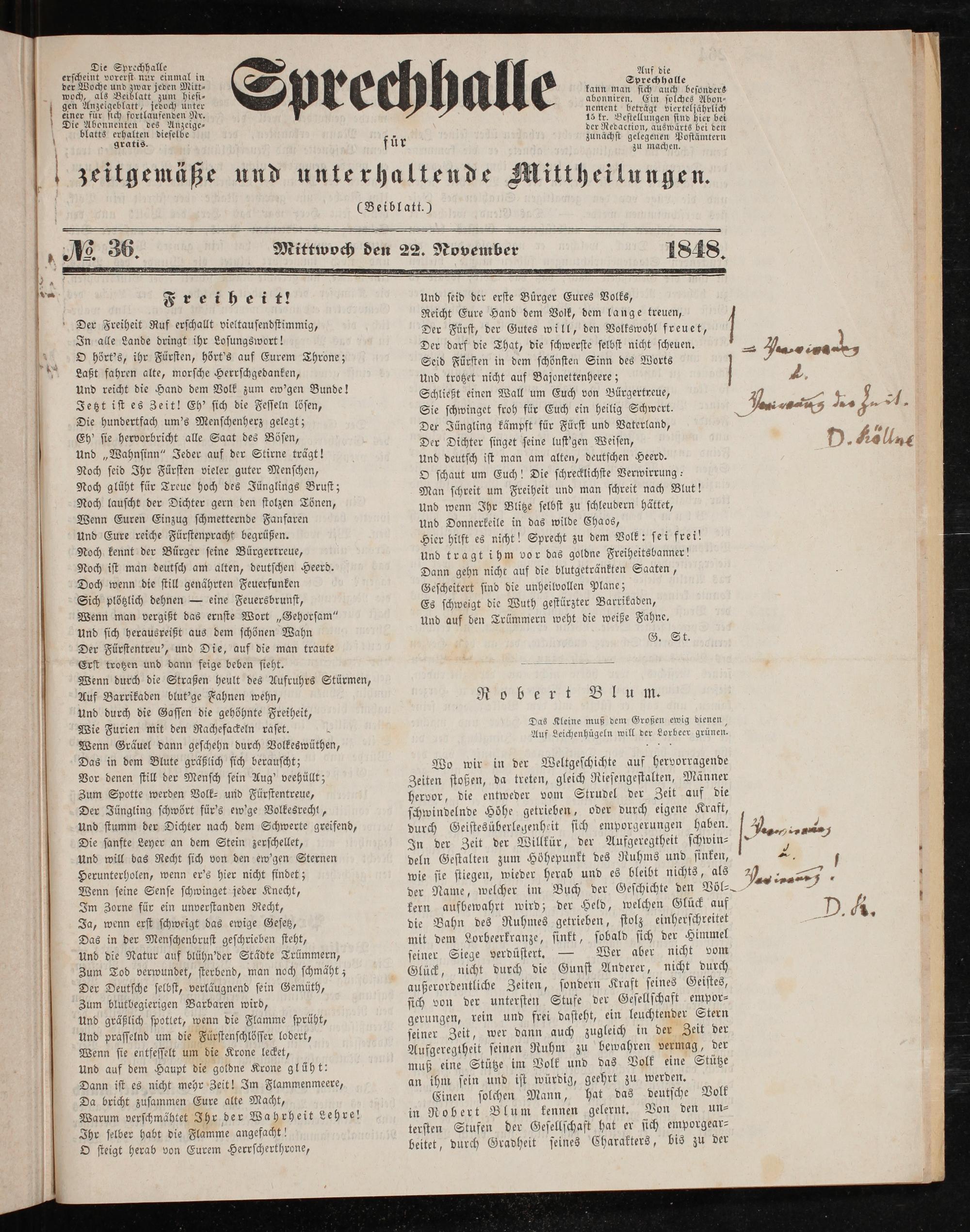 Einen solchen Mann, hat das deutsche Volk in Robert Blum kennen gelernt. Von den un⸗