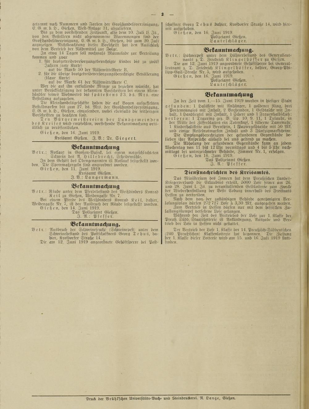 Gießen, den 16. Juni 1919.