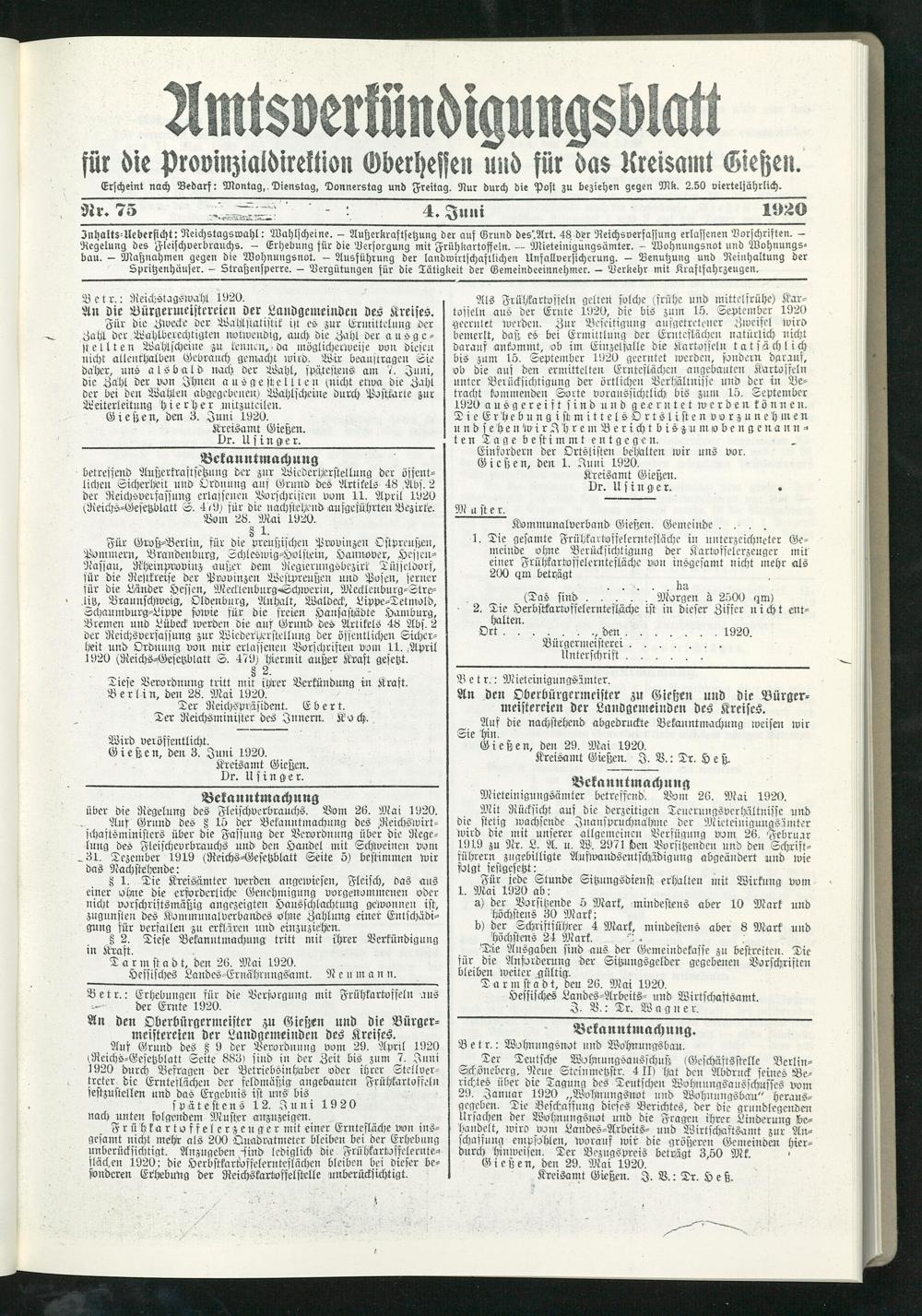 Kreisamt Gießen. I. V.: Dr. Heß.