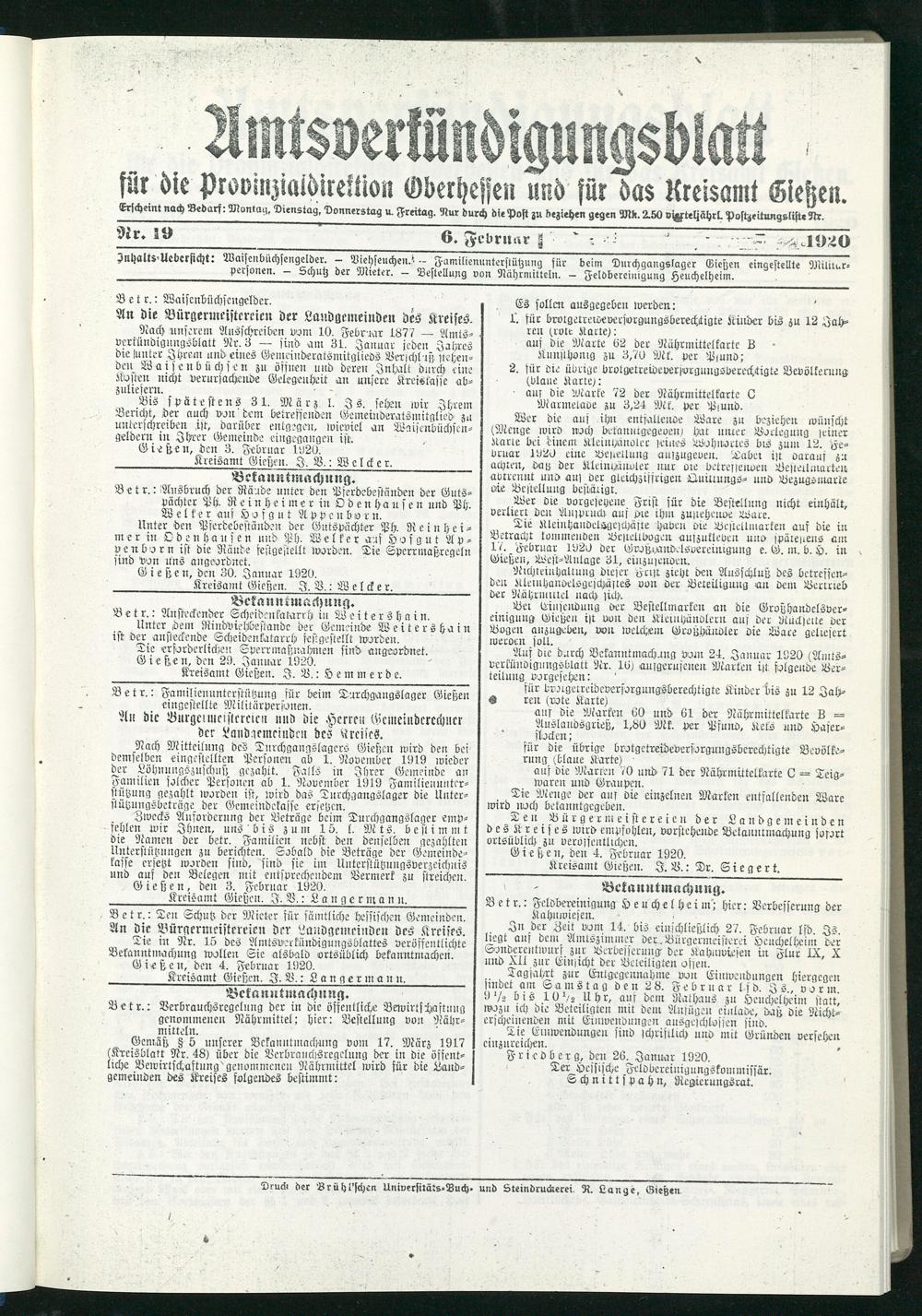 Gießen, den 3. Februar 1920.
