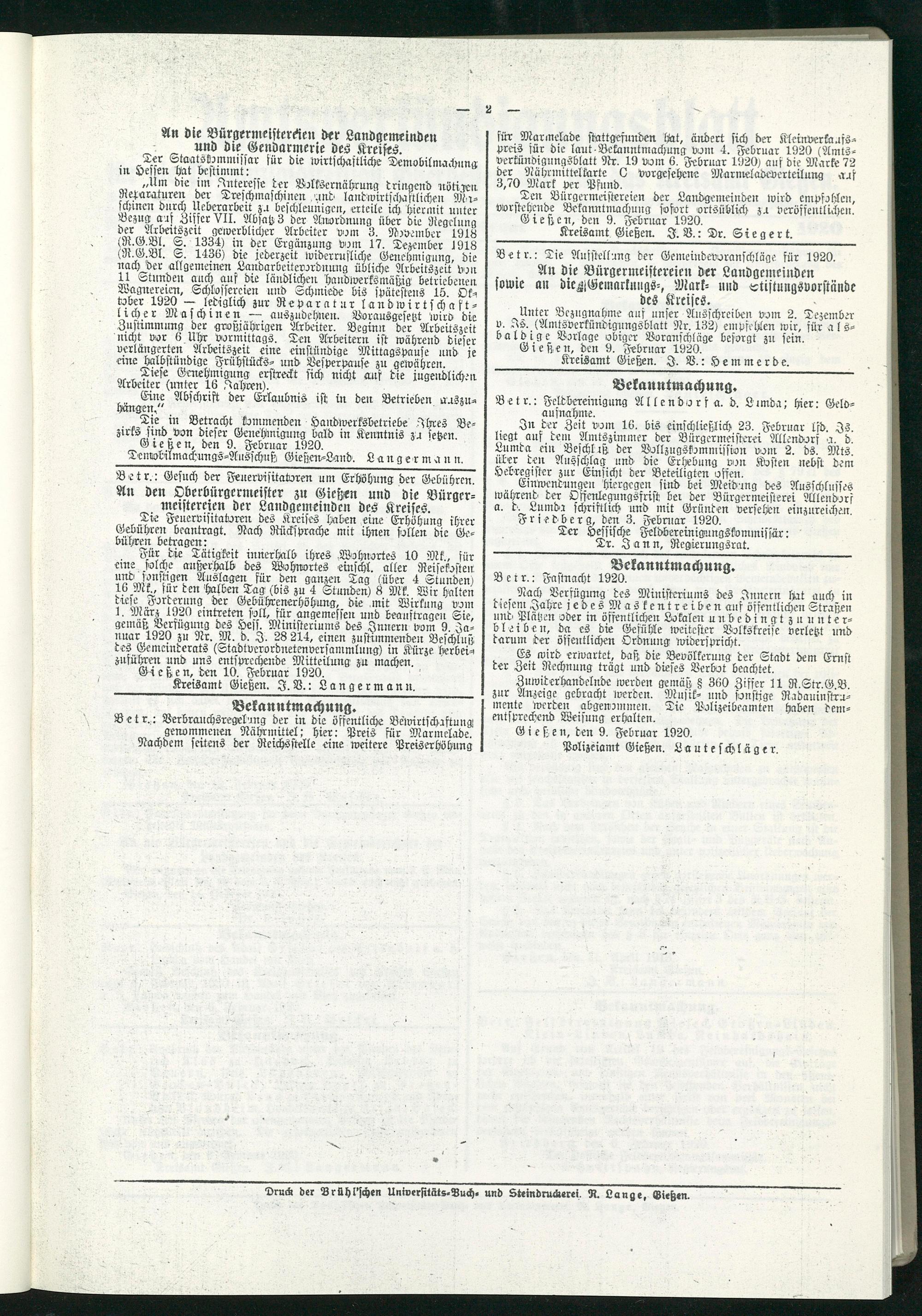 __________Kreisamt Gießen. I. V.: Dr. Sieger t.