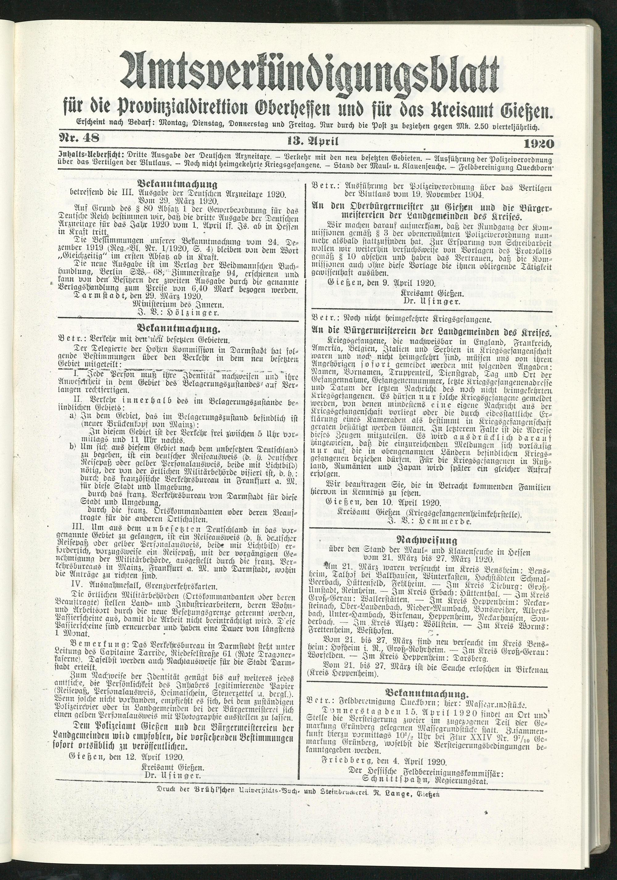 Gießen, den 10. April 1920.
