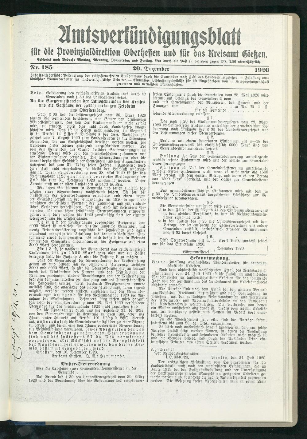 Gießen, den 16. Dezember 1920.