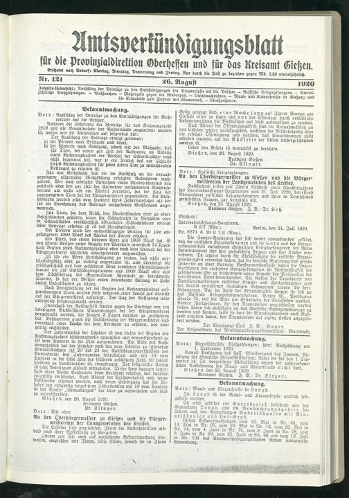 Gießen, den 20. August 1920.
