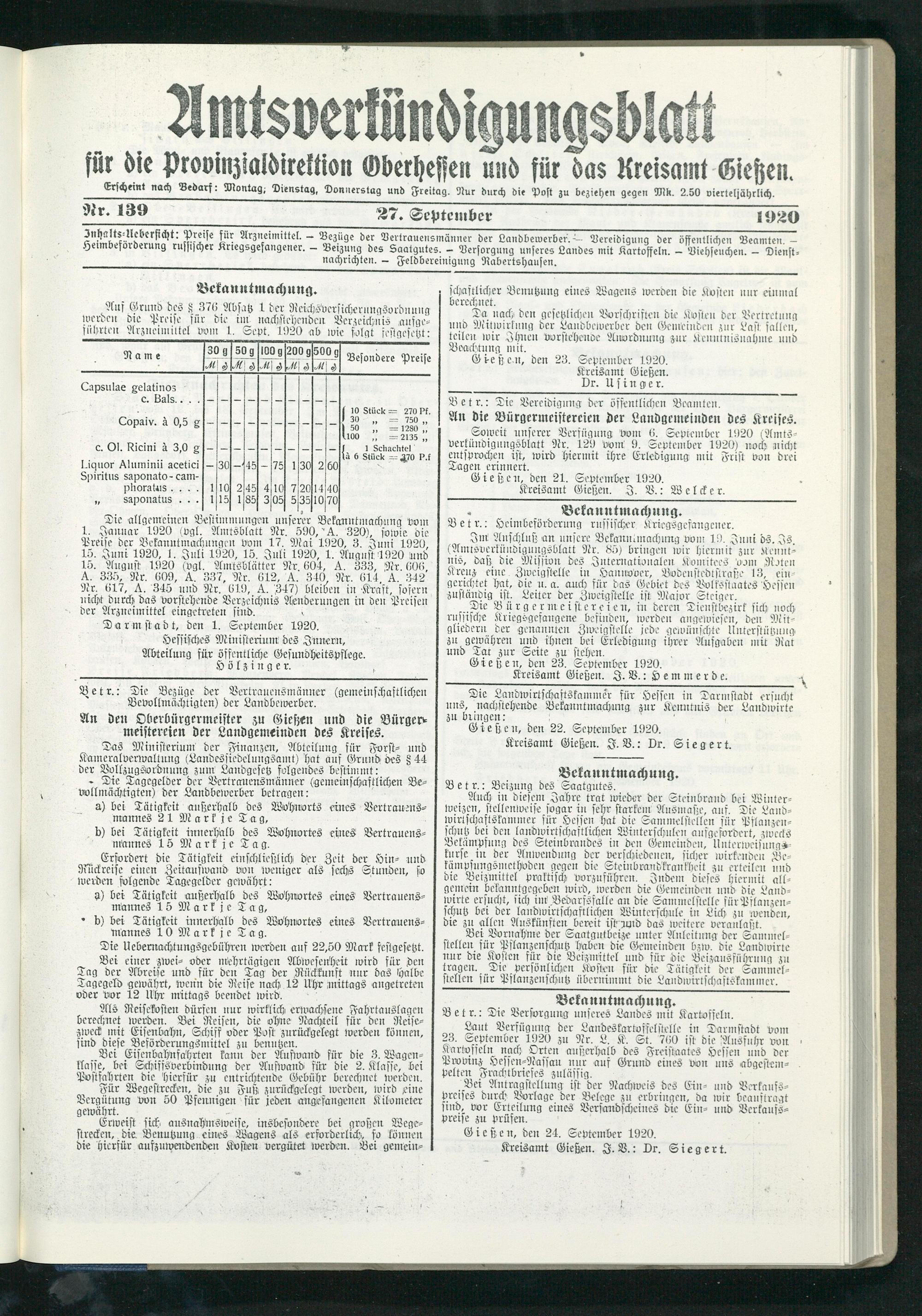 Kreisamt Gießen. I. V.: Dr. Siegert.