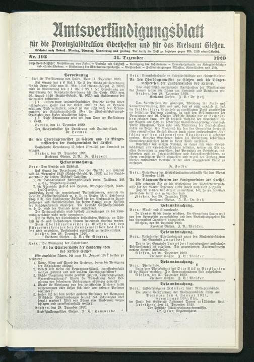 .Gießen, den 28. Dezember 1920.