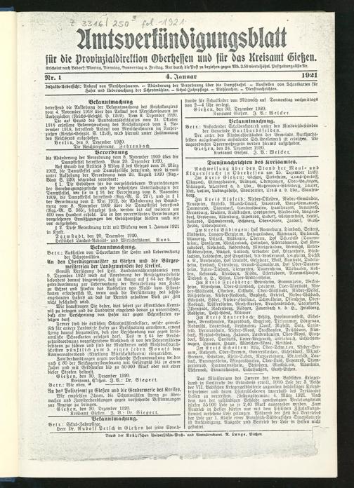 _________Kreisamt Gießen. I. V.: Dr. Siegert.