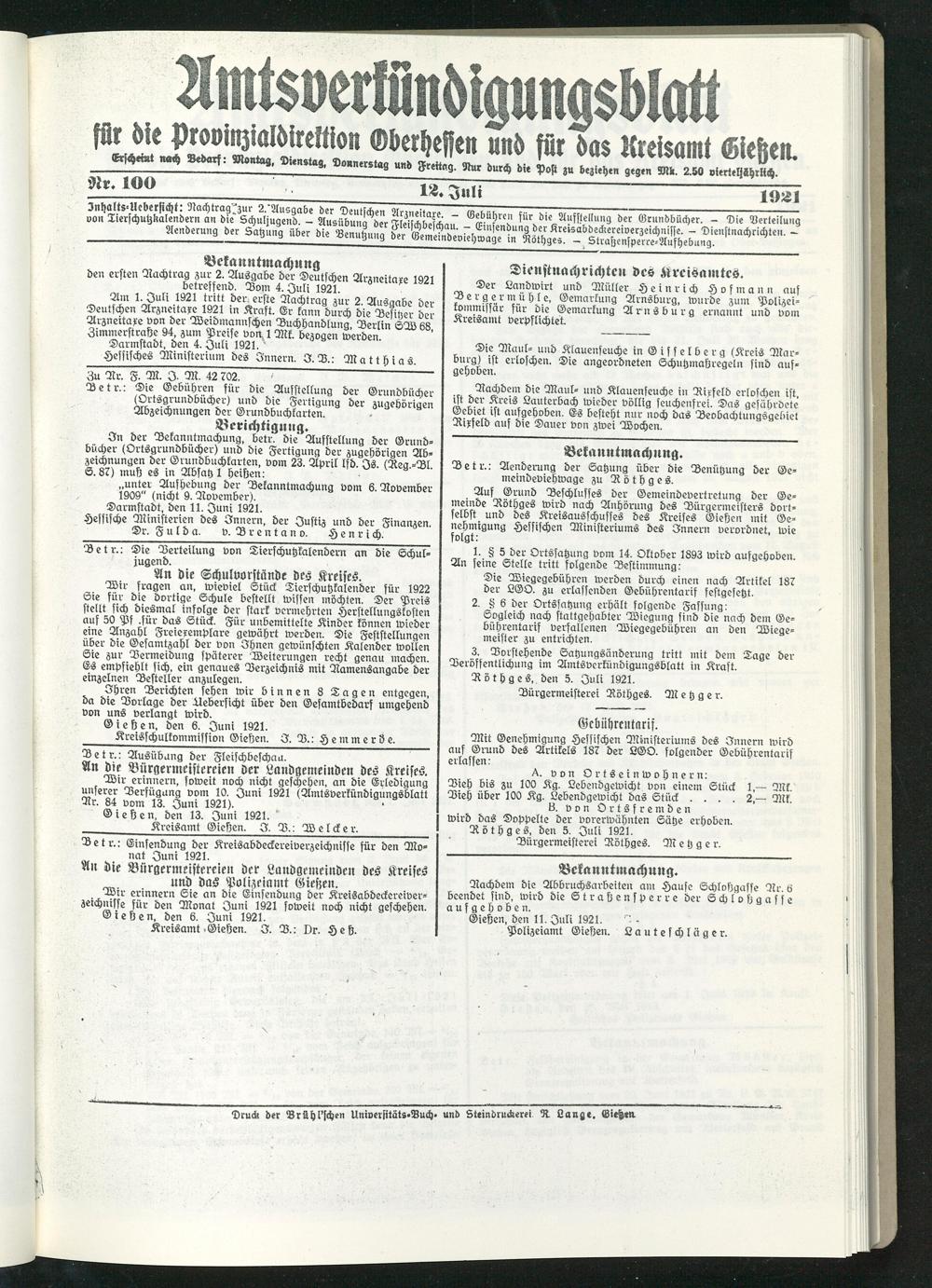 Gießen, den 11. Juli 1921.