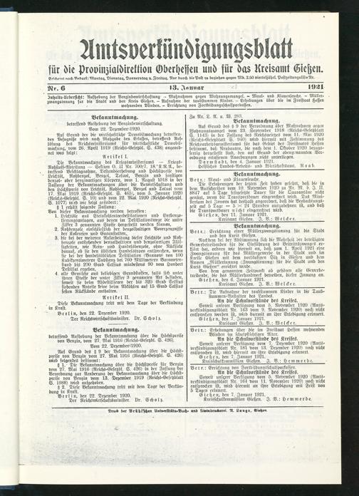 Gießen, den 7. Januar 1921.