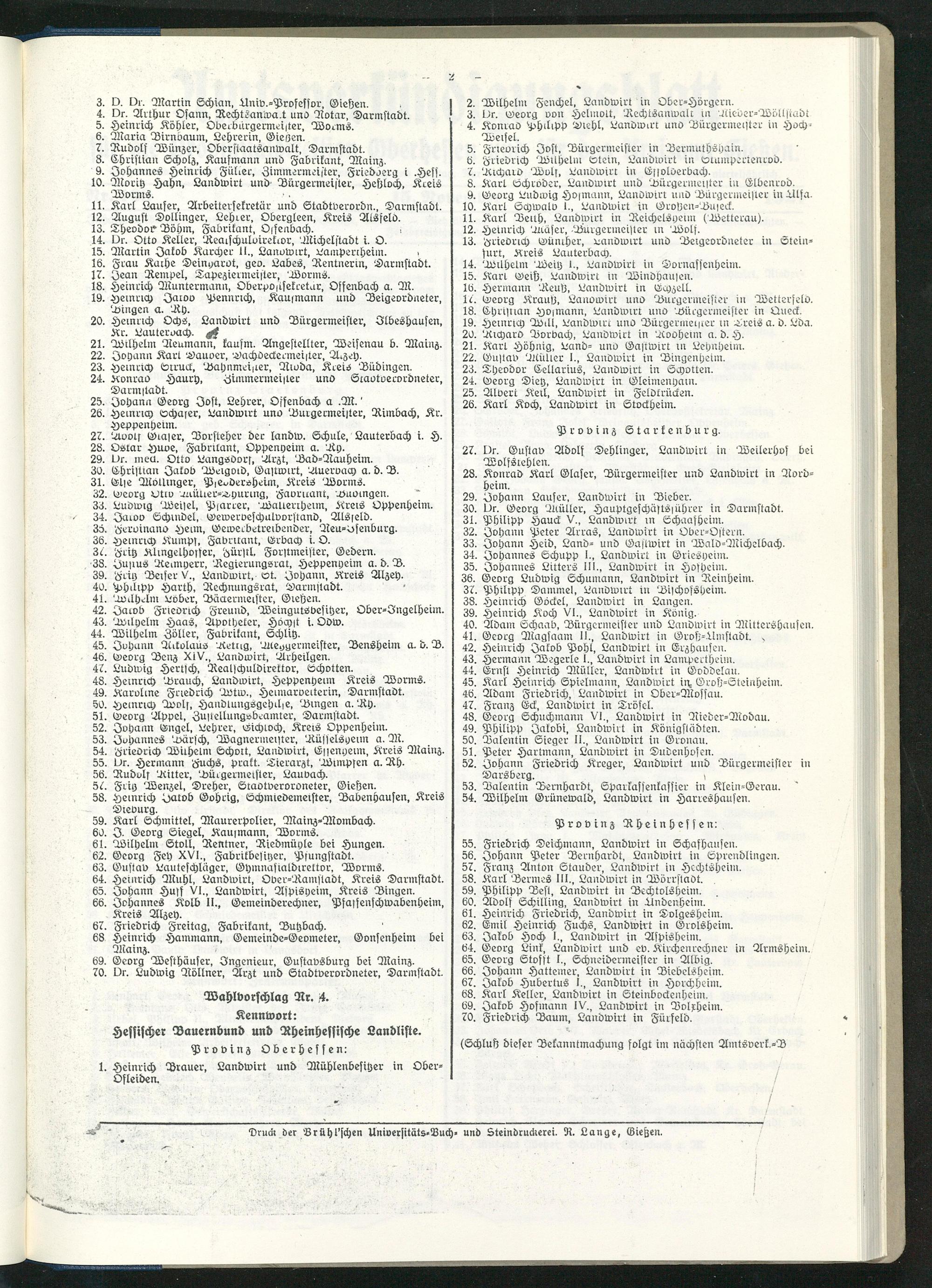 Hessischer Bauernbund und Rheinhessische Landliste.