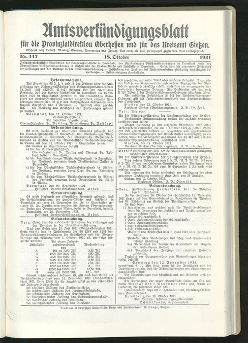 für die Provinzialdirektion Gberheffen und für das Kreisamt Gietzen.