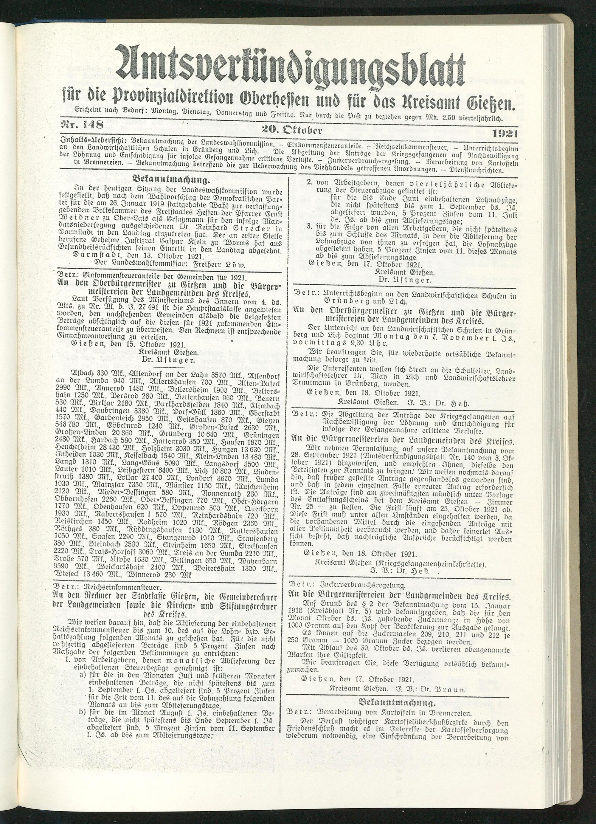 Kreisamt Gießen. 3. V.: Dr. Braun.