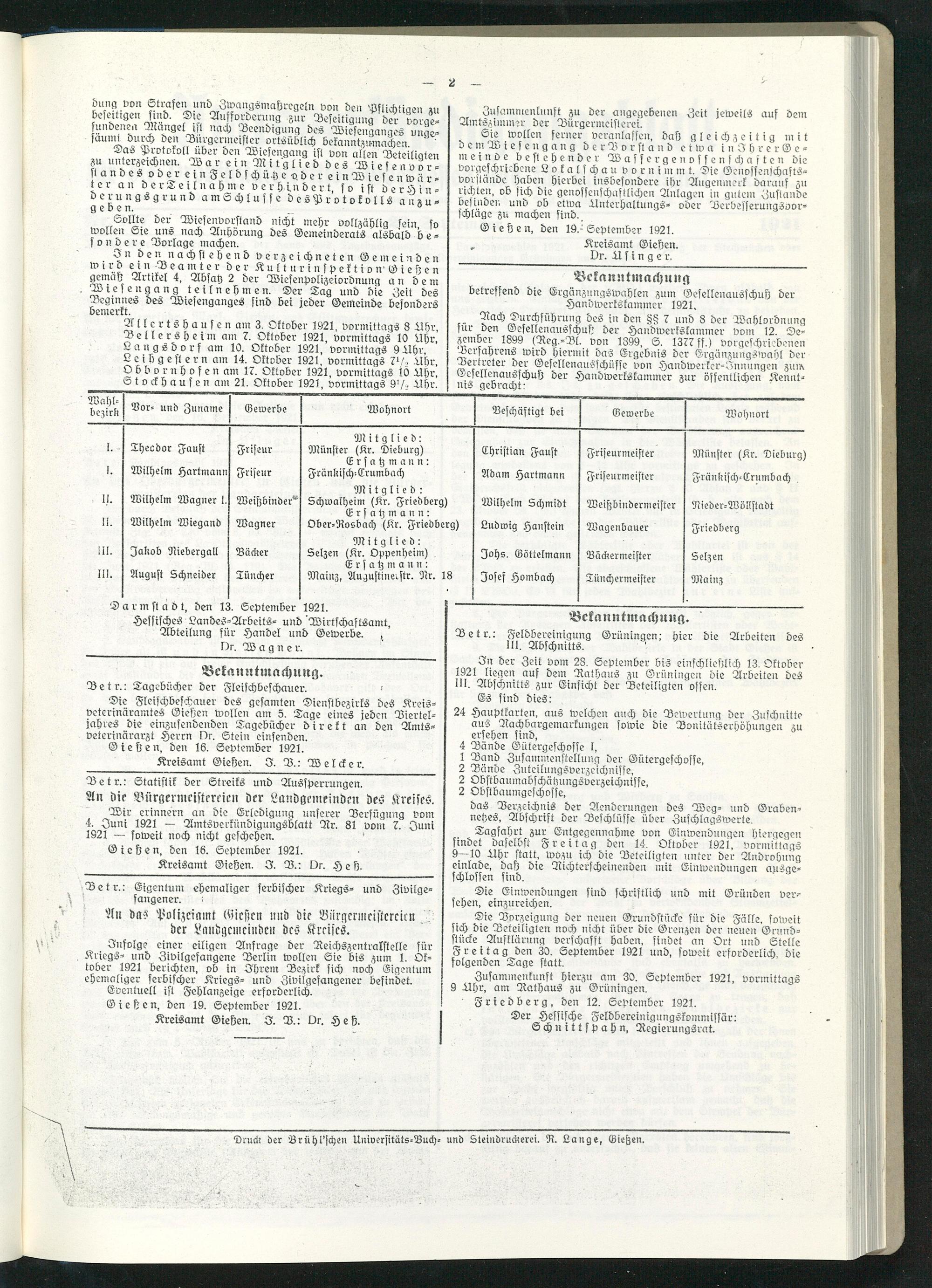 Kreisamt Gießen. I. V.: Dr. Heß.