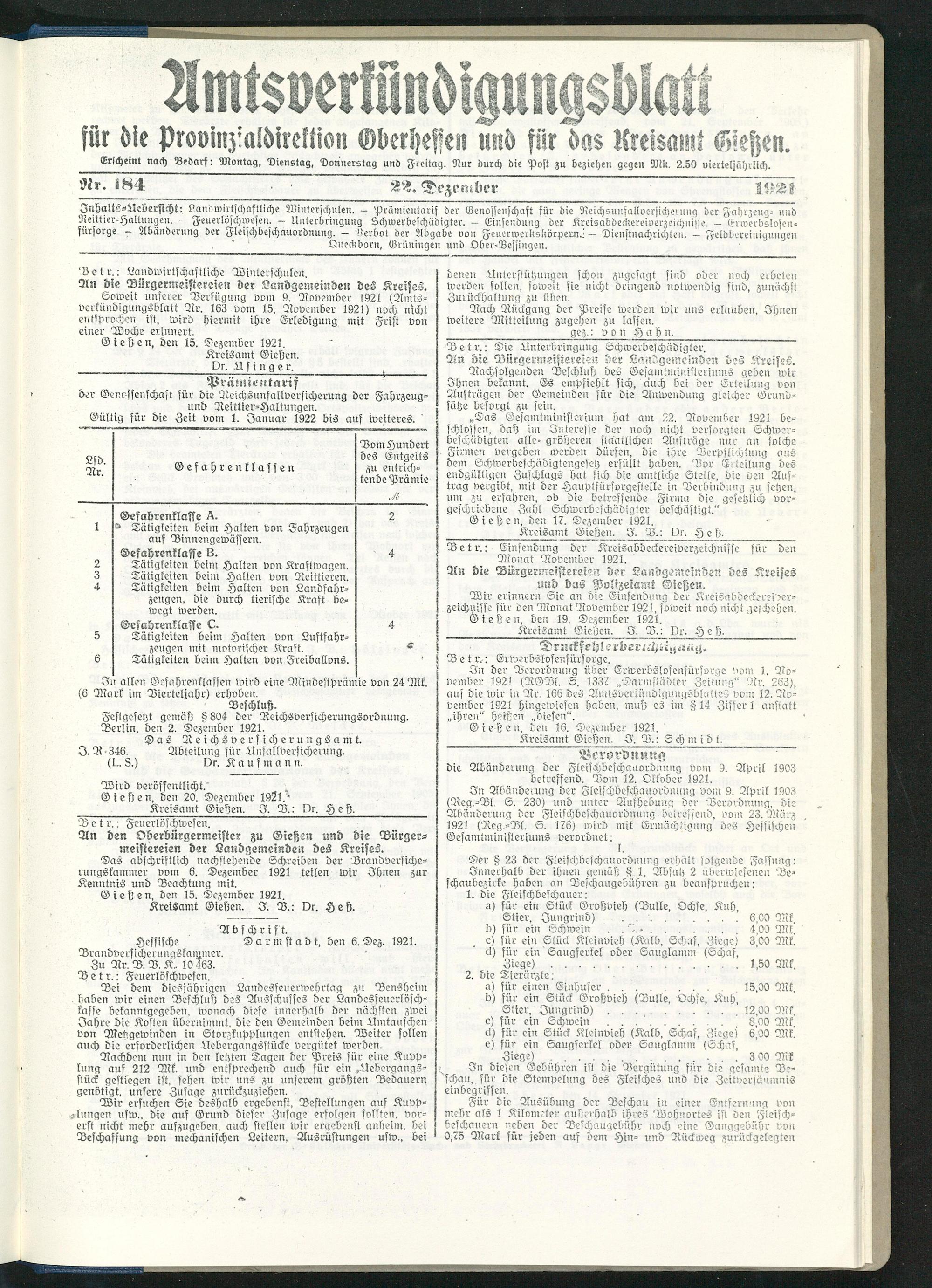 Kreisamt Gießen. 3. V.: Dr. H e ß.