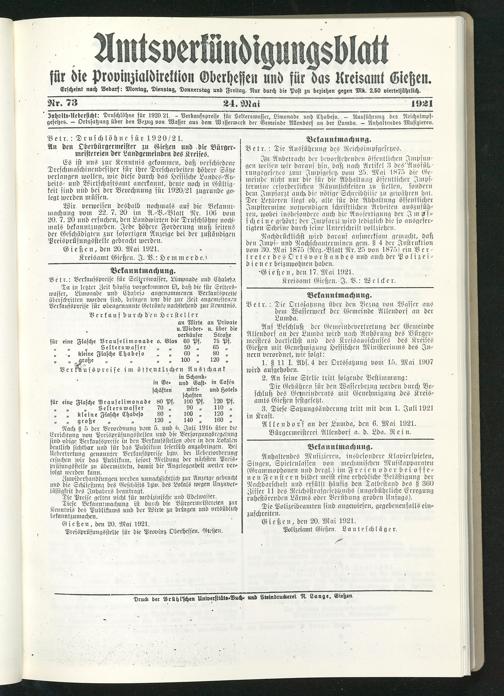 Kreisamt Gießen. I. V.: Hemmer de.i