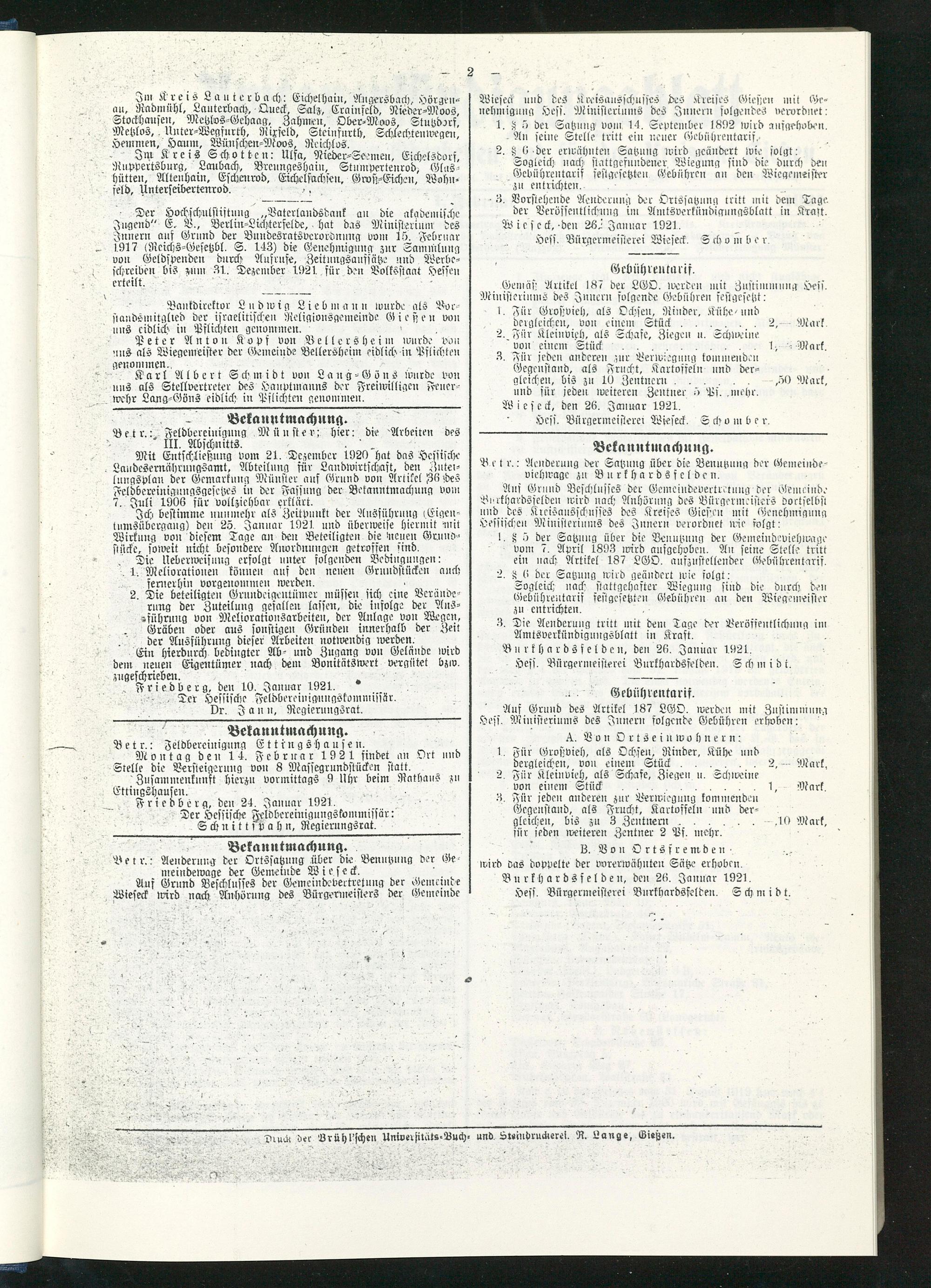 8. Von -Ortsfremden wird das doppelte der vorerwähnten Sätze erhoben. Burkhardsfelden, den 26. Januar 1921.