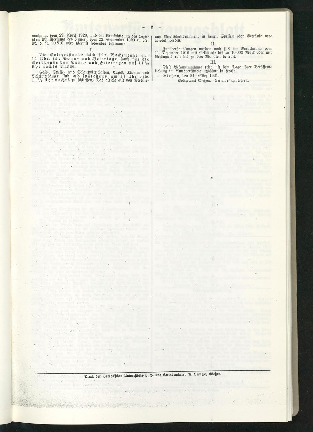 Tie Polizeistunde wird für Wochentage aus 11 Uhr, für Sonn- nnd.Feiertage, sowie für tue Vorabende von Sonn- nnd,Feiertagen aus 111/? Uhr nachts festgesetzt.