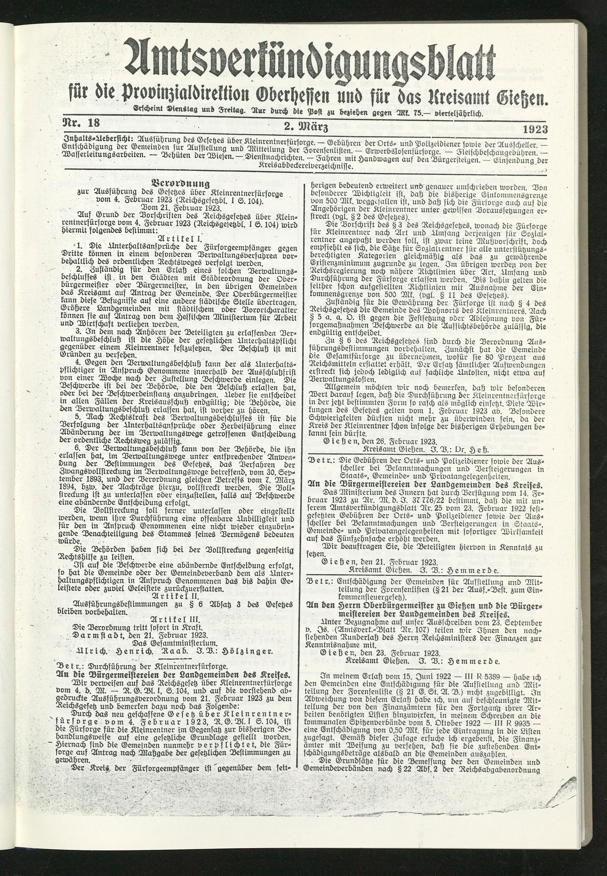______________Kreisamt Gießen. I. V.: llr. Hetz.______________ Detr.: Die Gebühren der Orts- und Polizeidiener sowie der Ausscheller bei Bekanntmachungen und Versteigerungen in Staats-, Gemeinde- und Privatangelegenheiten.