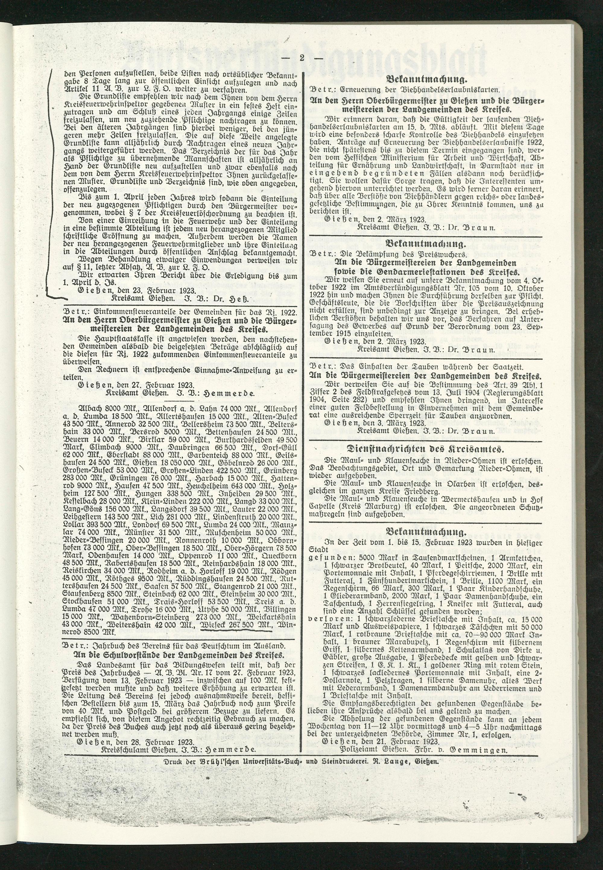 Kreisamt Gießen. I. V.: Dr. Braun.
